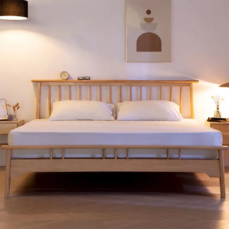 北欧スタイルの本格的な無垢材ベッド - モダンでシンプルな1.5m・1.8m波形ソフトパッド付きダブルベッド。フランス風のレトロデザインが魅力的で、主寝室にぴったり!