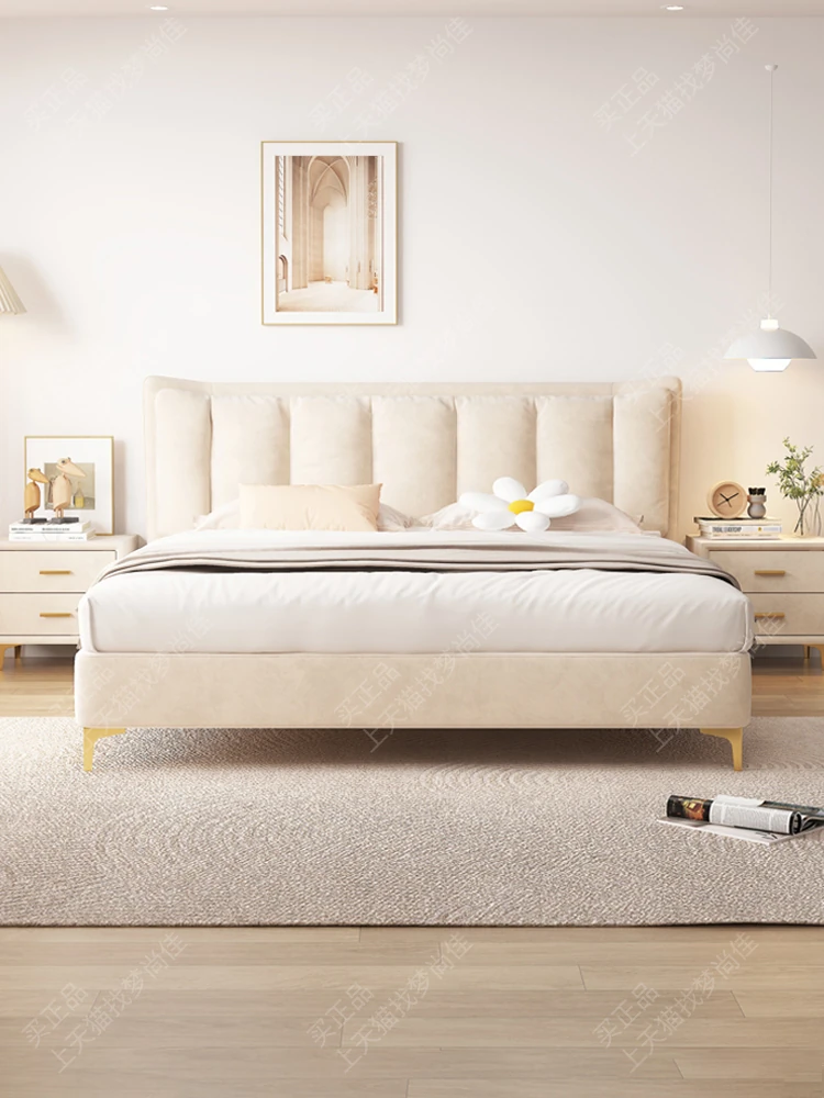 新感覚技術布使用!軽量モダンデザインの大容量収納付き軽ラグジュアリーベッド - 人気のクリームカラー、1.5m/1.8m二人用主寝室ベッド