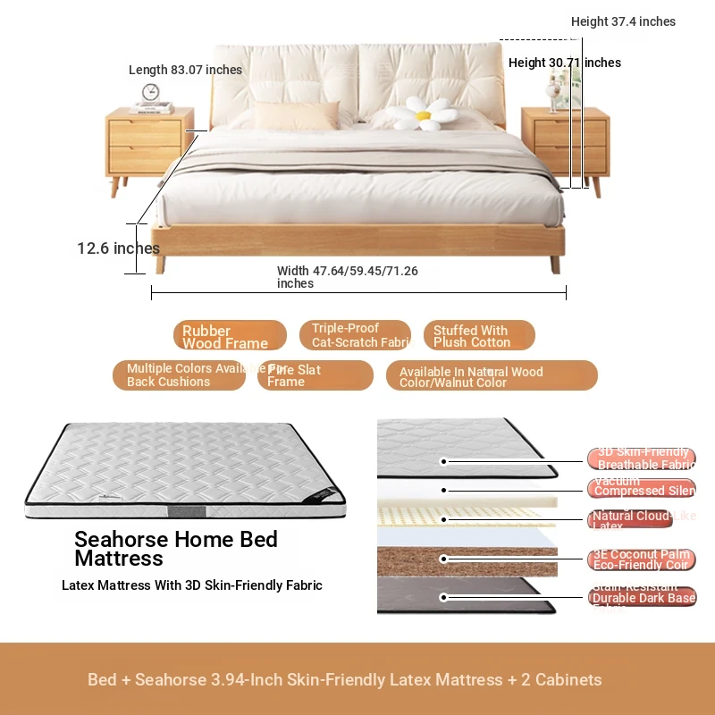 Bed + seahorse 5.91in Comfortable latex mattress +2 cabinets(Mattress: soft and hard moderate)