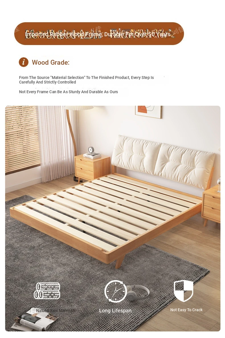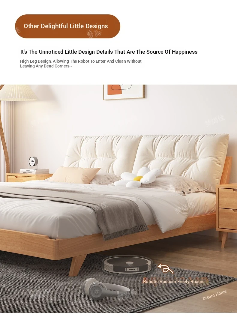 Japanese Solid Wood Cloud Bed - Natural Oak Double Bed 1.8m/1.5m for Master Bedroom, Modern Minimalist Wabi-Sabi Style - Timeless Elegance and Comfort
