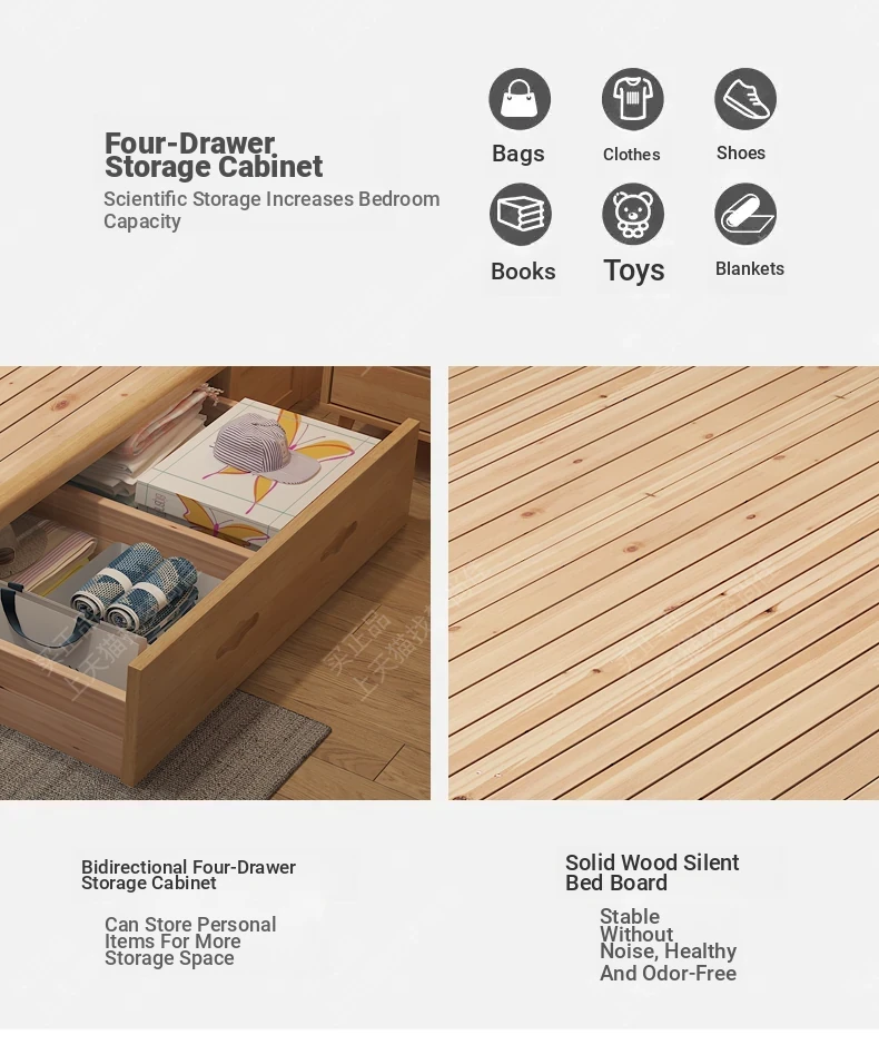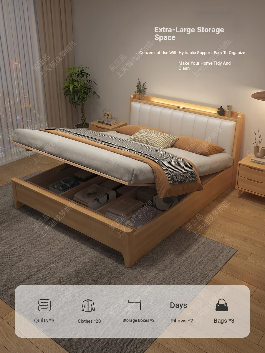 Modern Scandinavian Solid Wood Storage Bed - Hydraulic Lift Platform Design, 1.5m/1.8m Sizes, Sleek Minimalist Style, Optimize Your Bedroom Space