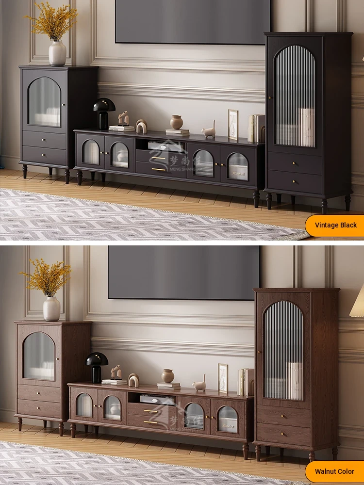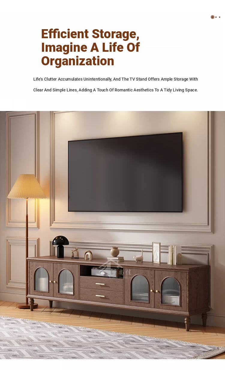 New American Solid Wood TV Stand - Elegant French-Style for Cozy Living Rooms, Space-Saving Design for Small Homes, Perfect for Bedrooms, Latest High-Rise Model