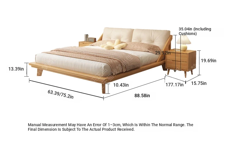 Nordic-Japanese Solid Wood Cloud Bed 1.8m: Modern Minimalist Tatami Low Profile Double Bed for Cozy Small Spaces