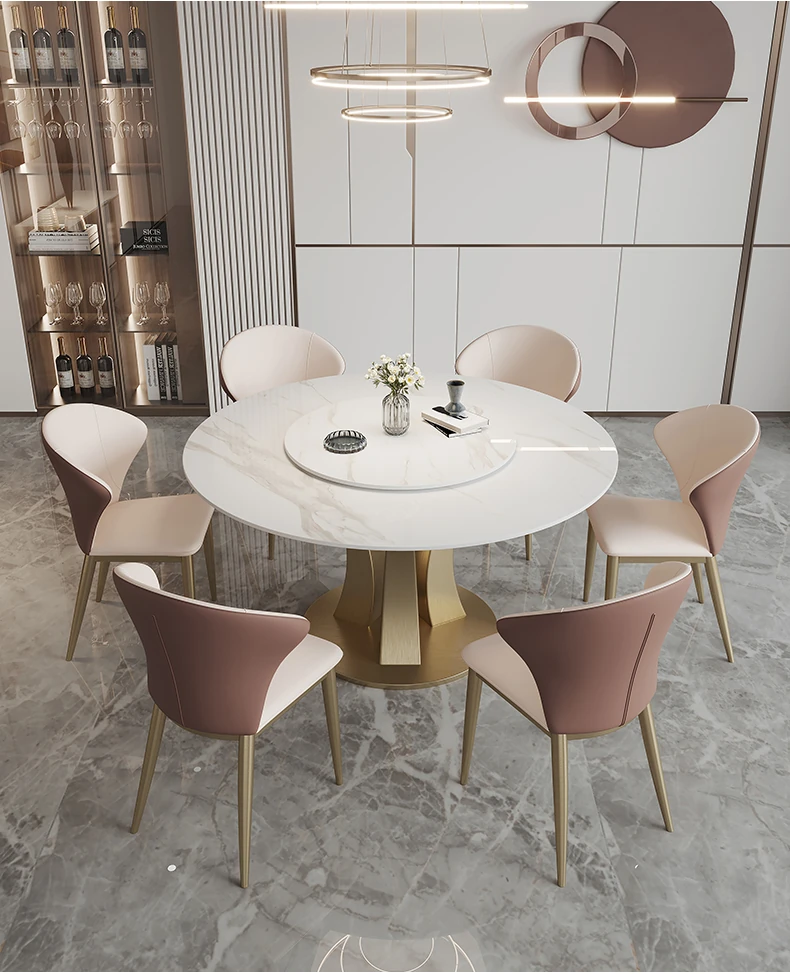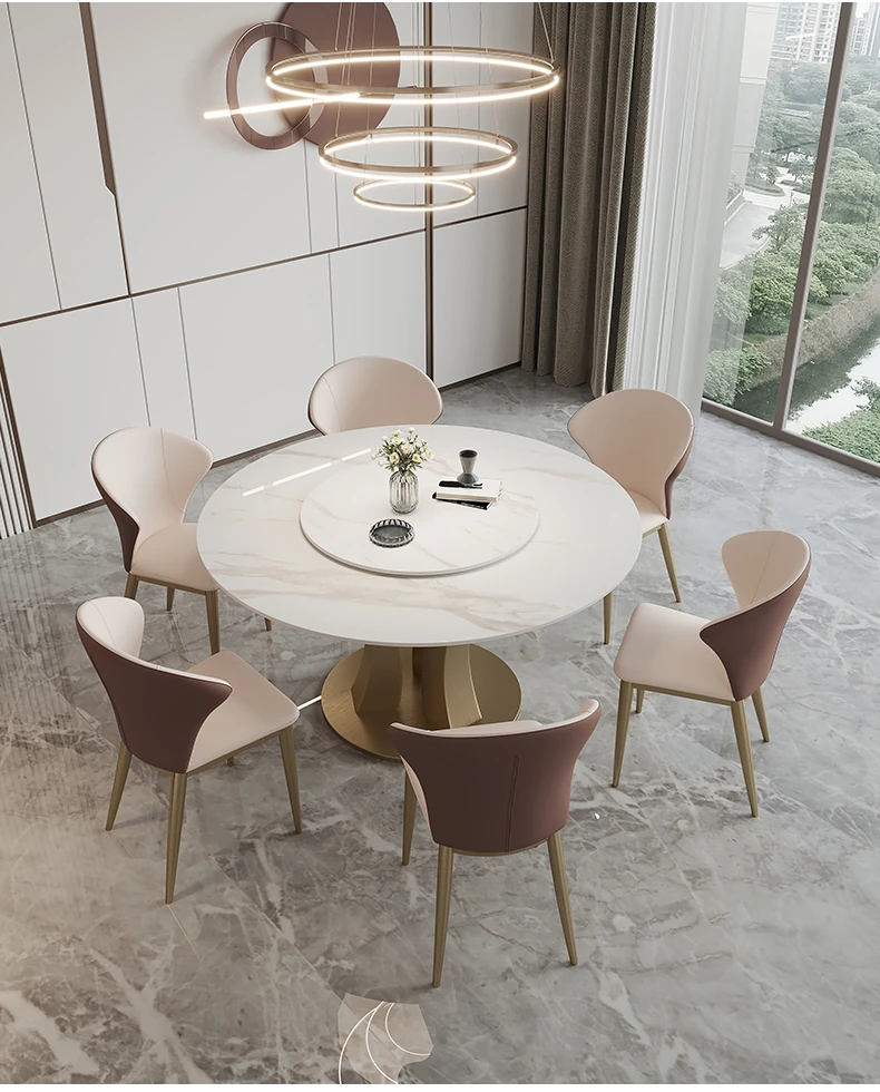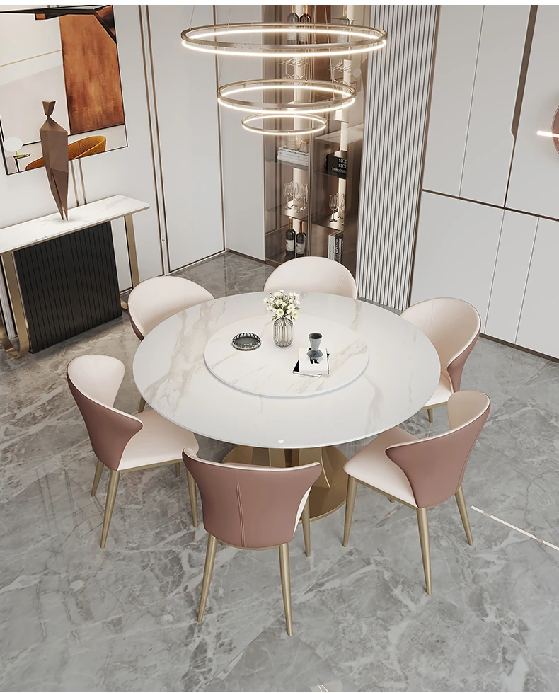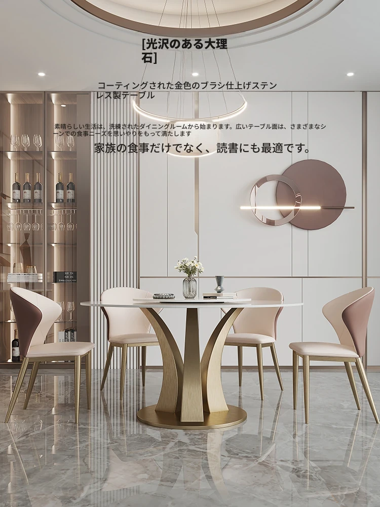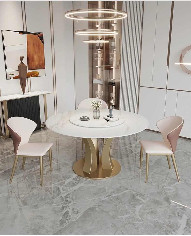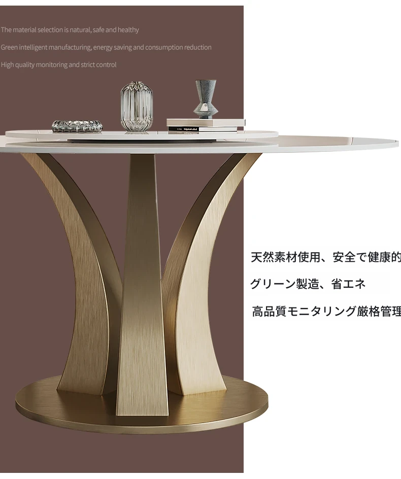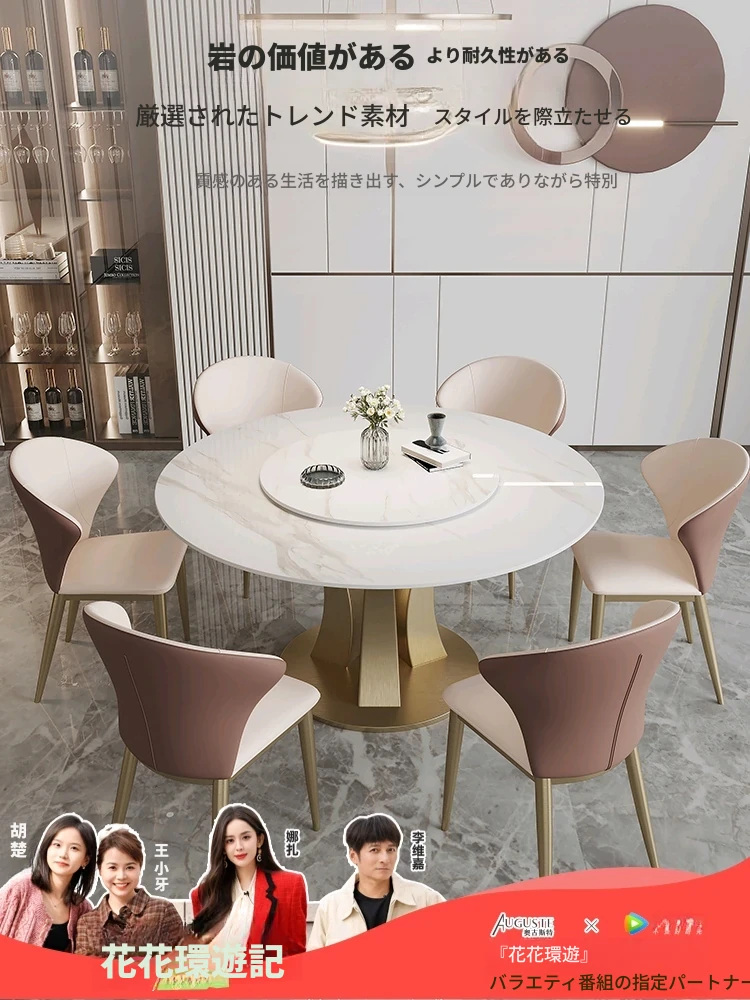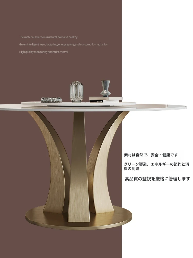 オーガスト ラグジュアリー 光沢仕上げ 丸型テーブル(回転式)モダンミニマリスト イタリアンスタイル シンプルで洗練されたデザイン 小型住居に最適✨