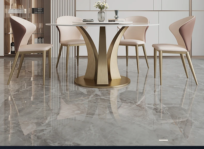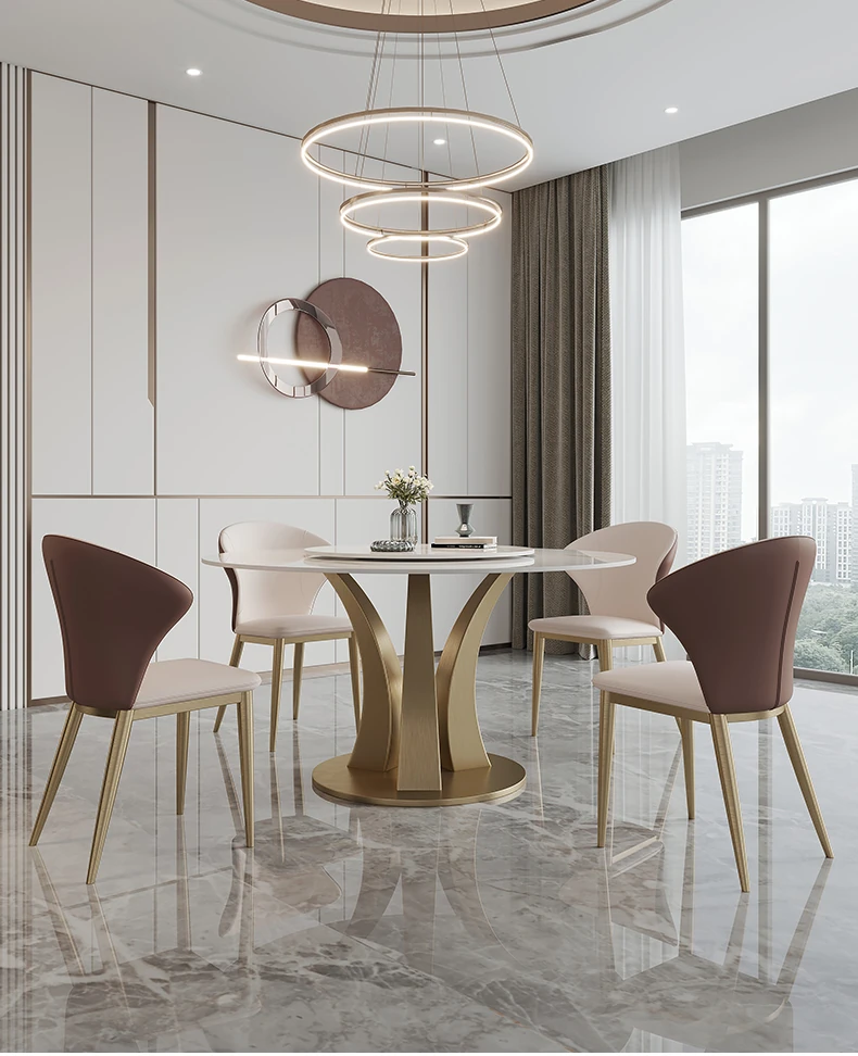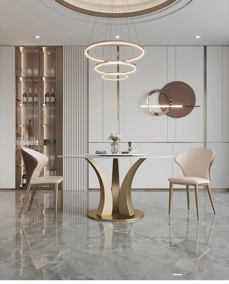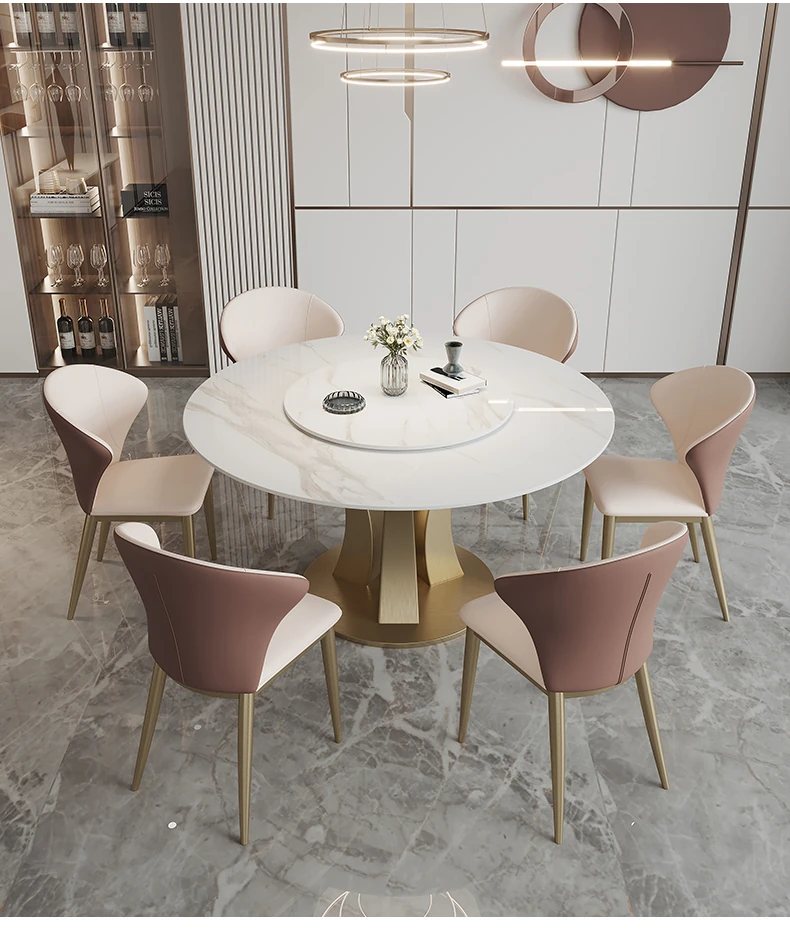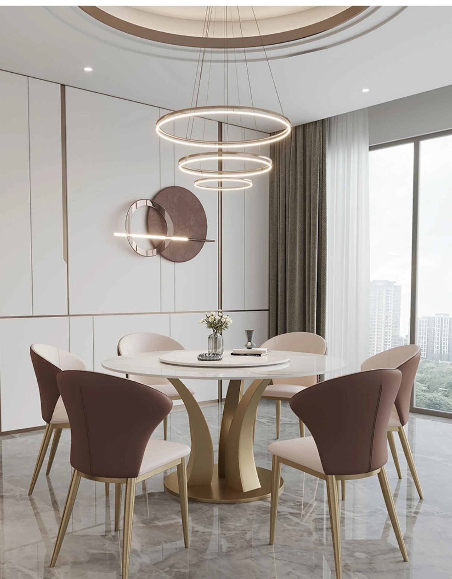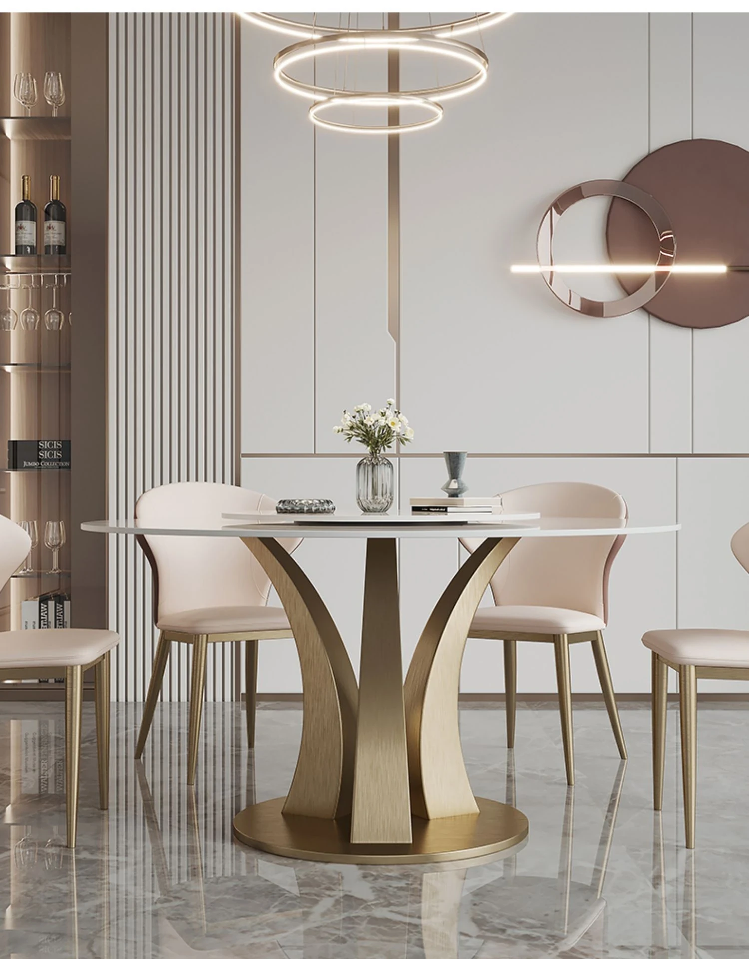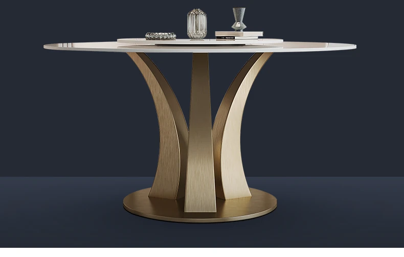 オーガスト ラグジュアリー 光沢仕上げ 丸型テーブル(回転式)モダンミニマリスト イタリアンスタイル シンプルで洗練されたデザイン 小型住居に最適✨