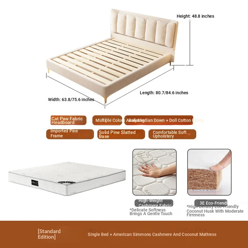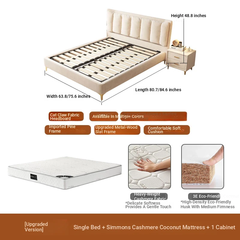 【アップグレード版】ベッド+ナイトテーブル*1+ベッド+アメリカシモンズカシミアコイヤーマットレス【脊椎保護硬め】