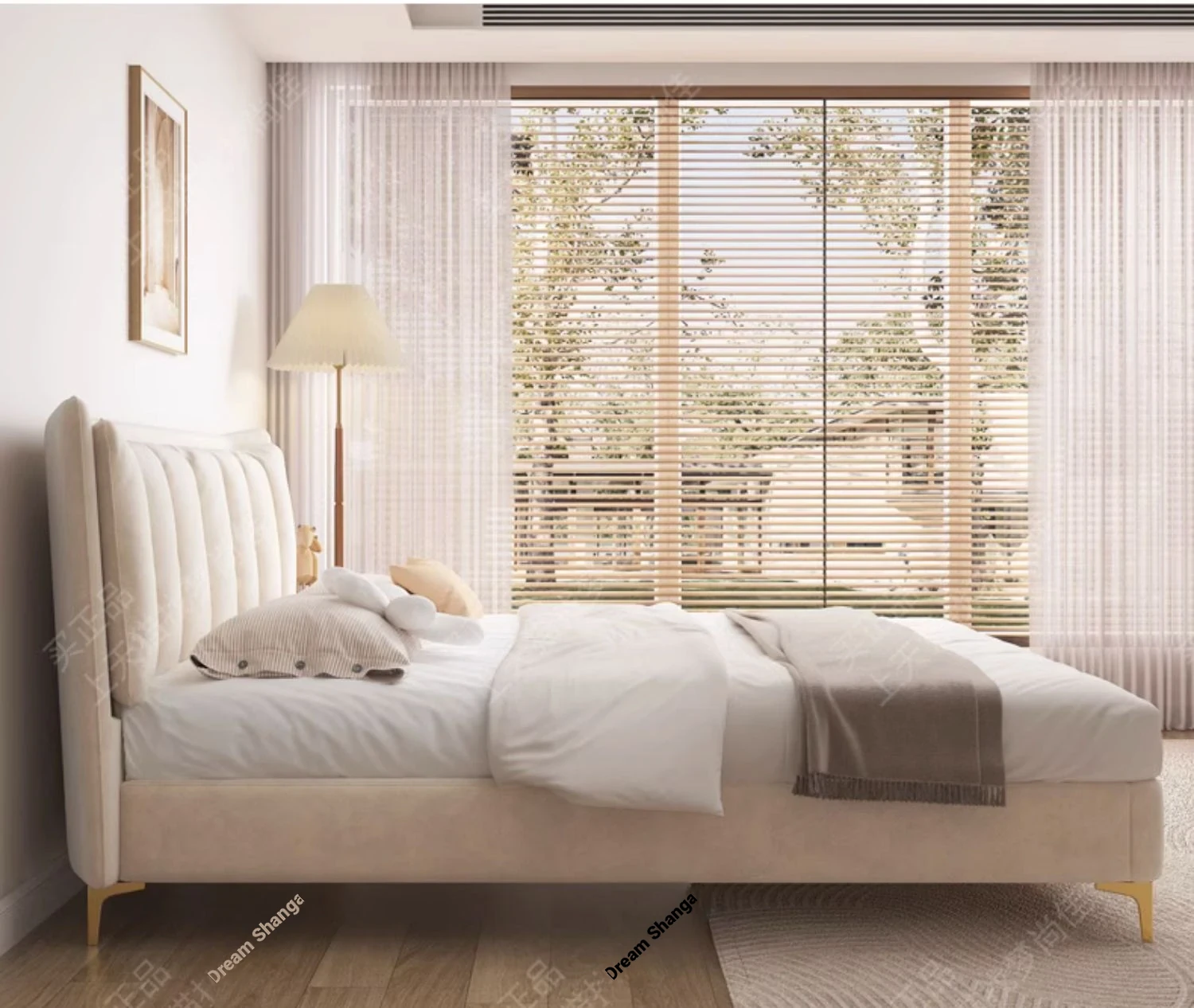 魅力溢れる!1.5m 北欧軽奢モダンなハイテクファブリックベッド - 大容量収納付き 1.8m 主寝室ダブルベッド