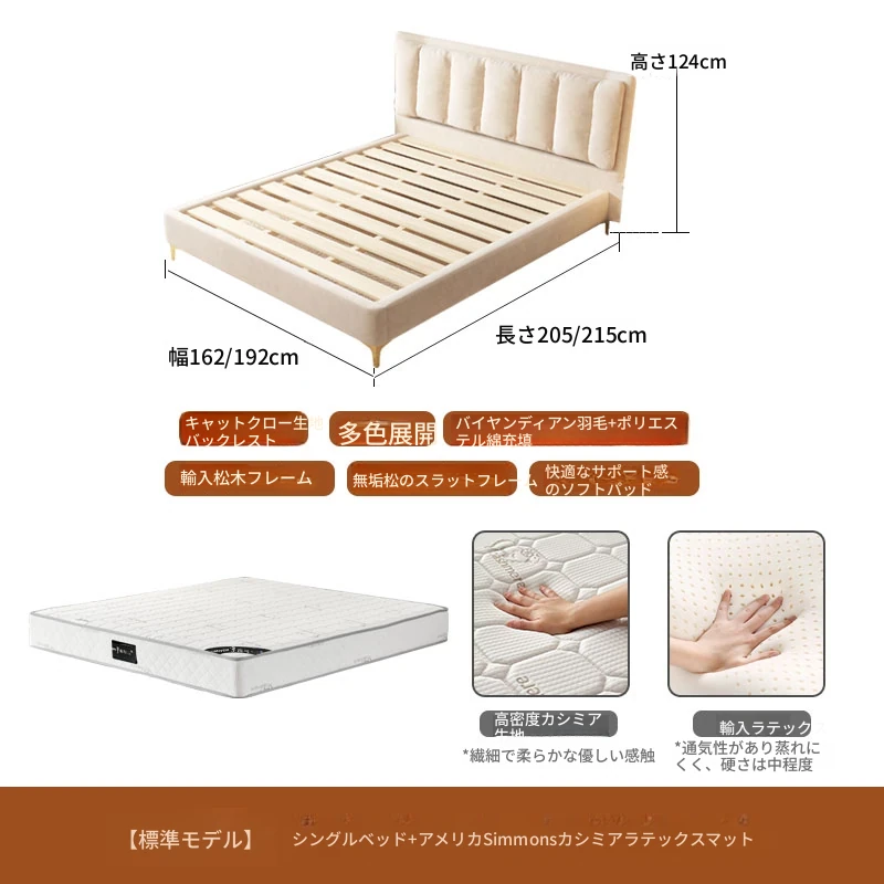 【アップグレード版】ベッド+アメリカシモンズカシミアラテックスマットレス【適度な硬さ】