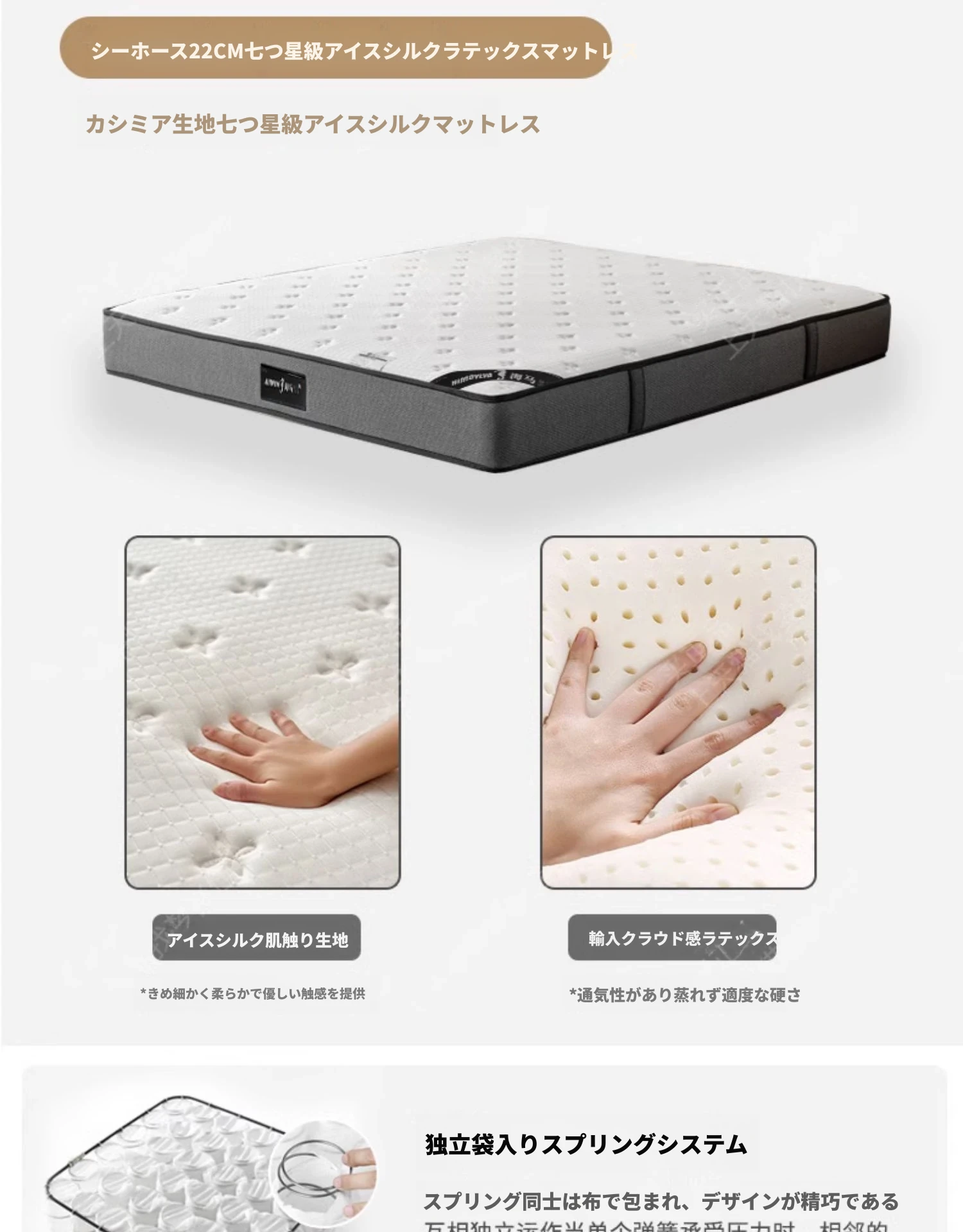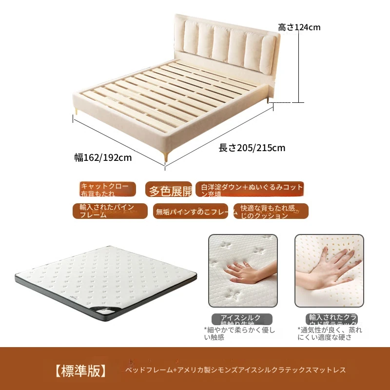 【スタンダード版】ベッド+アメリカシモンズアイスシルクラテックスマットレス【独立ポケットスプリング】