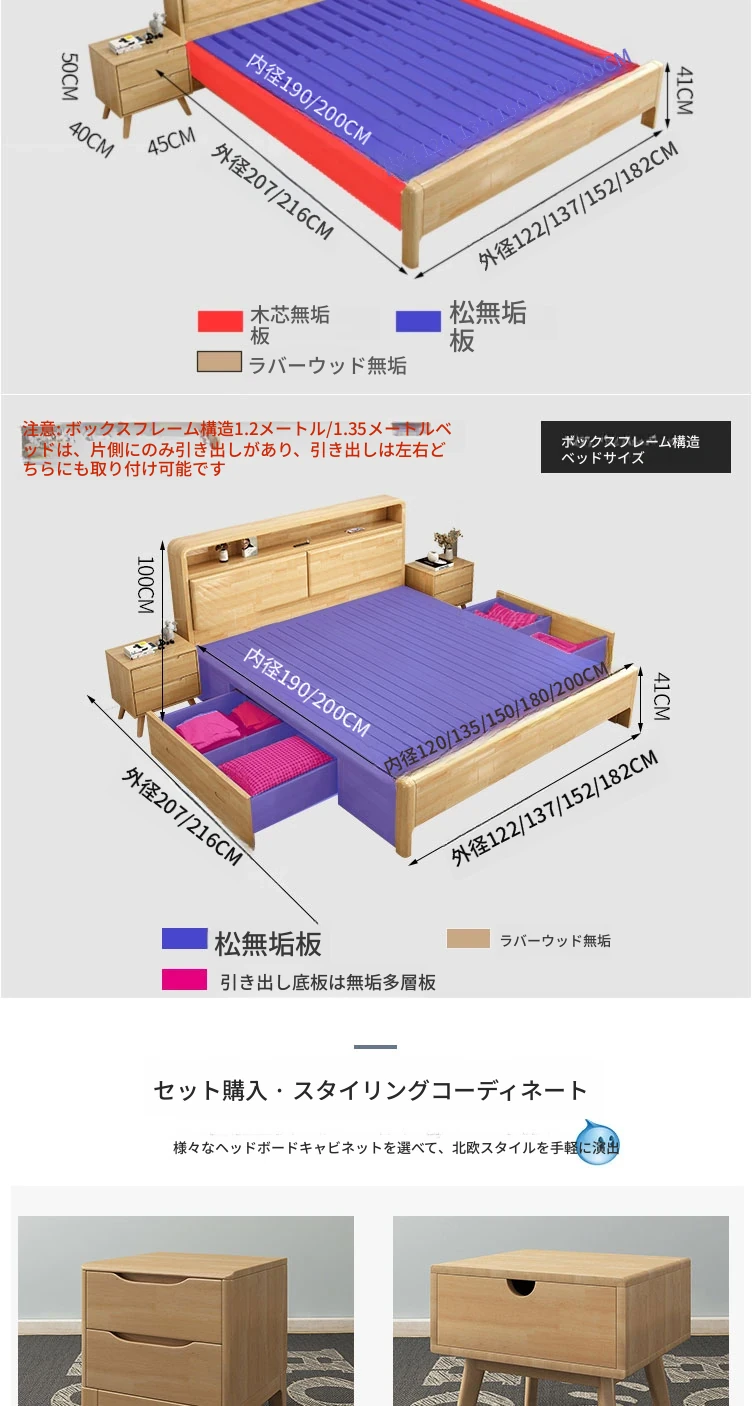 実木ベッド+10cmアイスシルクラテックスココナッツマットレス+2キャビネット