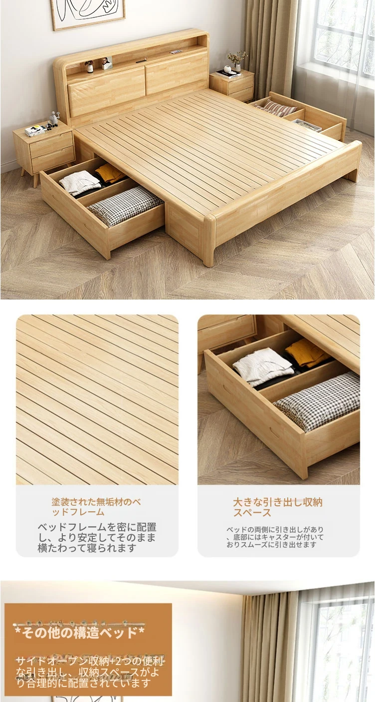 北欧モダンデザイン!省スペース1.3メートル全木製収納ベッド - 主寝室にぴったり!夜間照明付きで便利な高気圧ストレージ機能を備えた1.8mサイズ