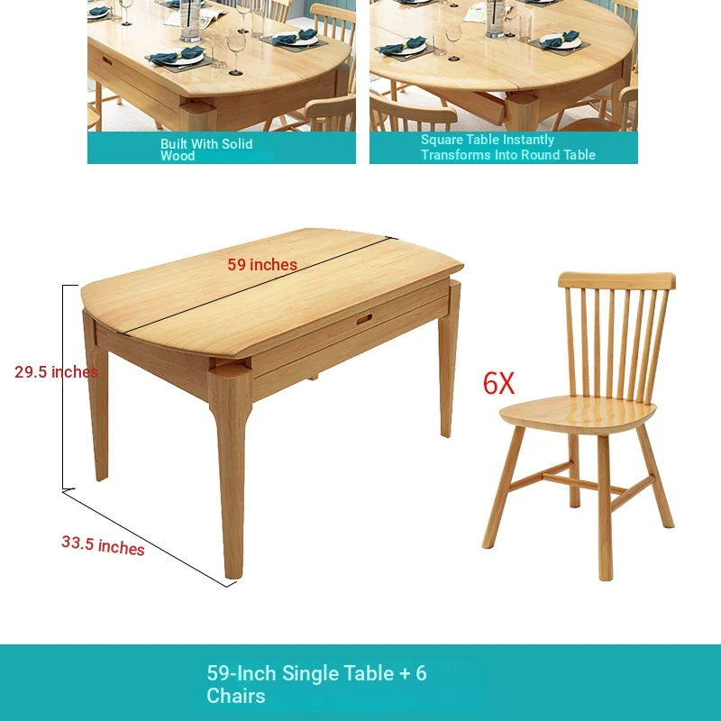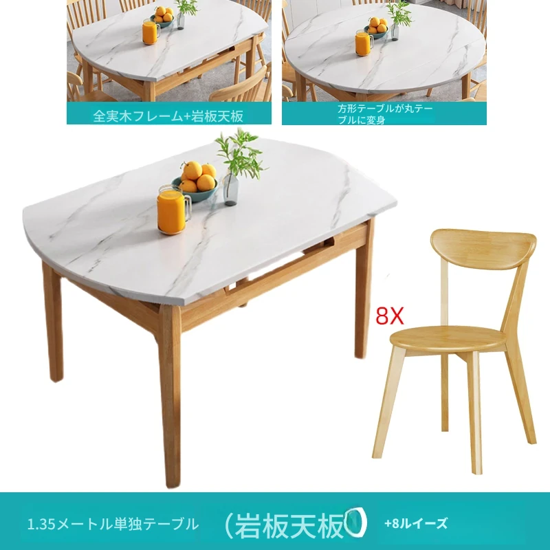 Nordic Style Solid Wood Slate Dining Table Set - Modern Minimalist Folding & Extendable Round Table for Small Spaces, Perfect for Your Home Dining Experience