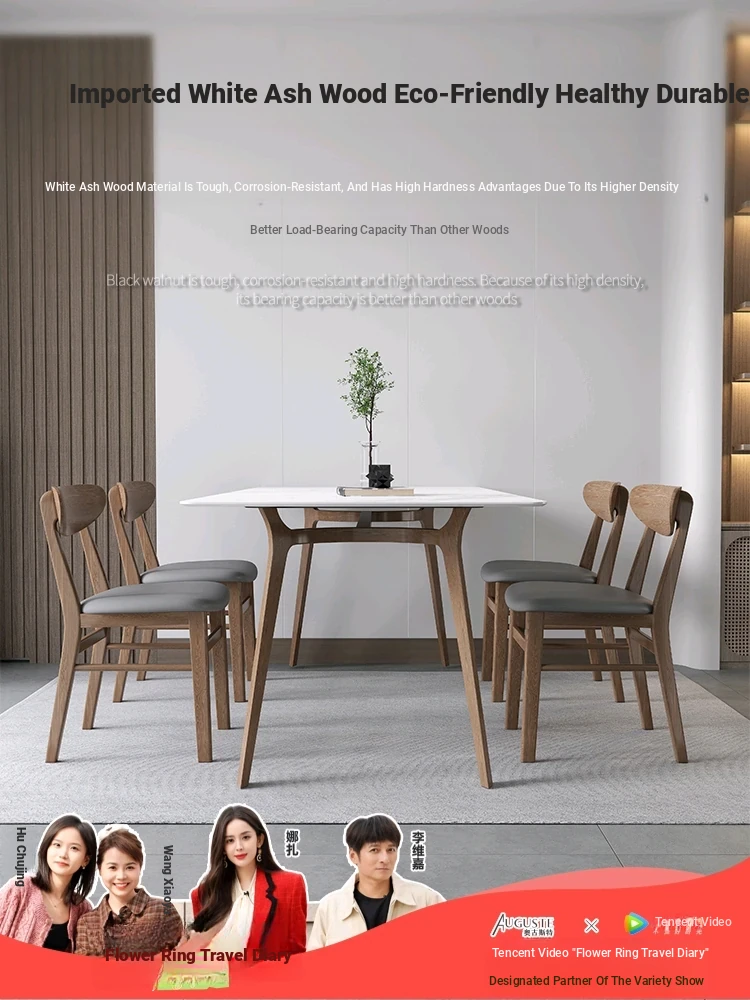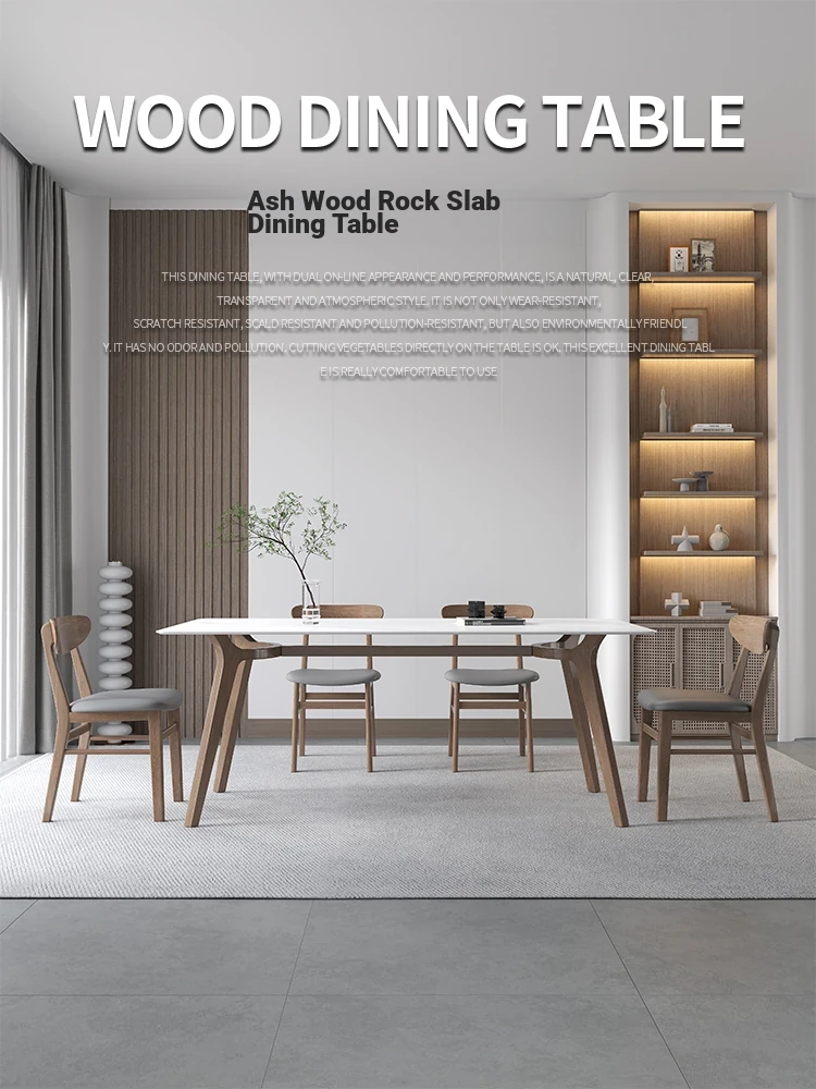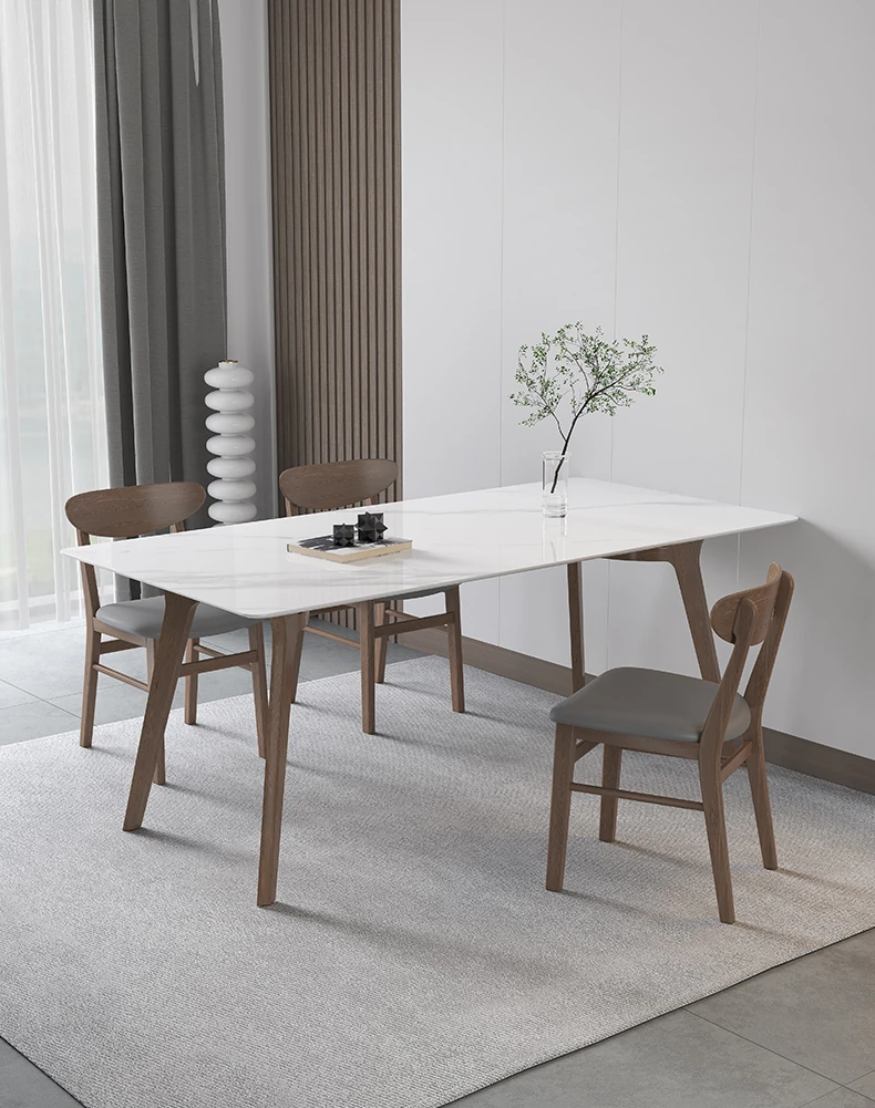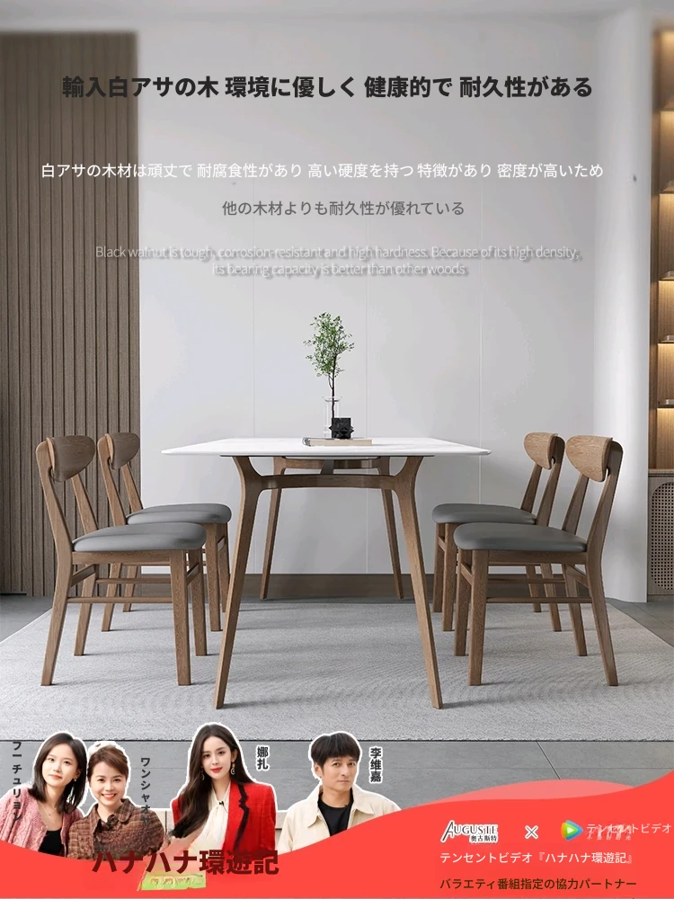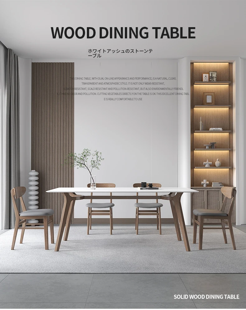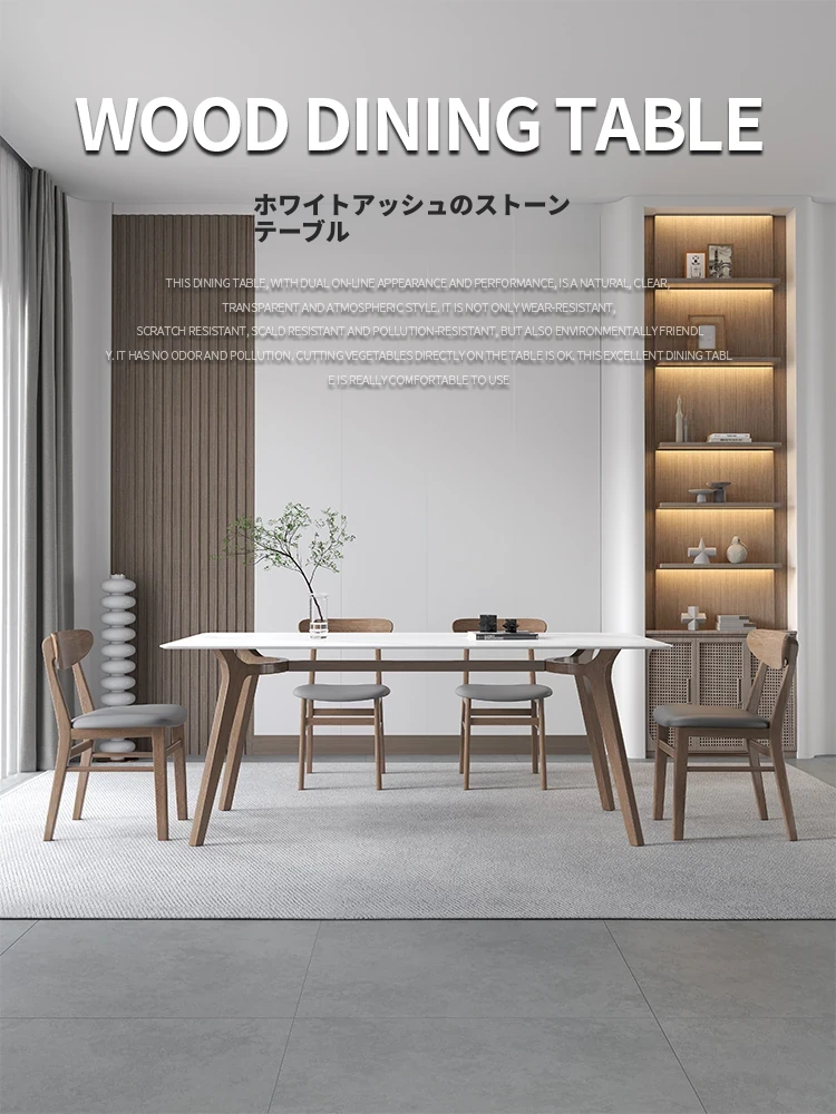 光沢のある天然木製ダイニングテーブル - モダンでシンプルな高級ウォールナット色、狭い部屋にもぴったりな長方形デザイン。食事のひとときを特別なものに!