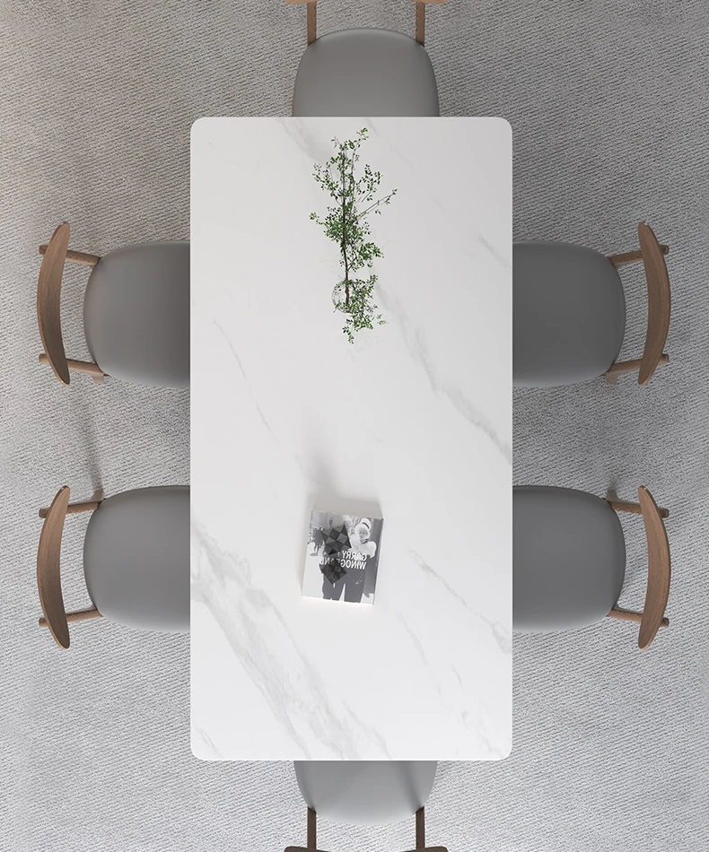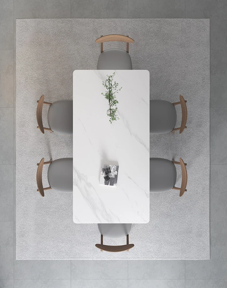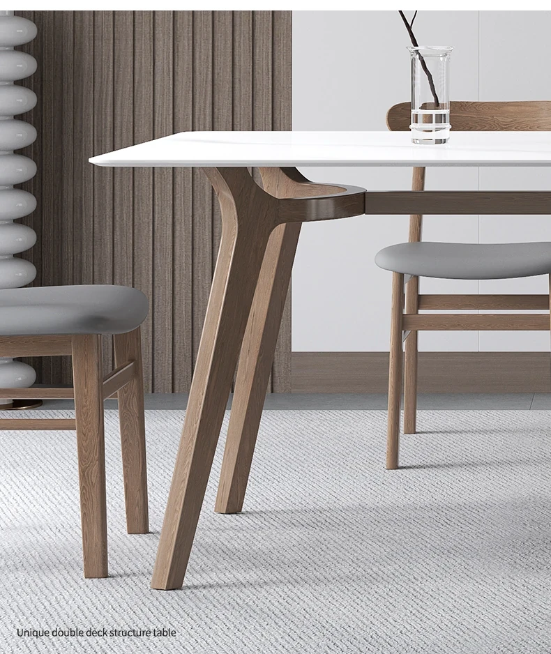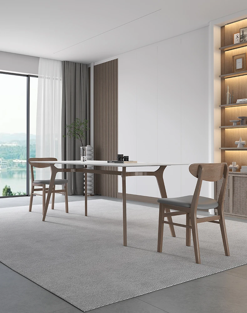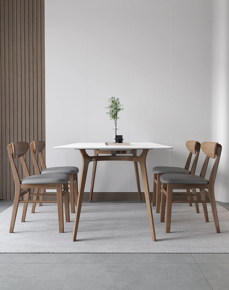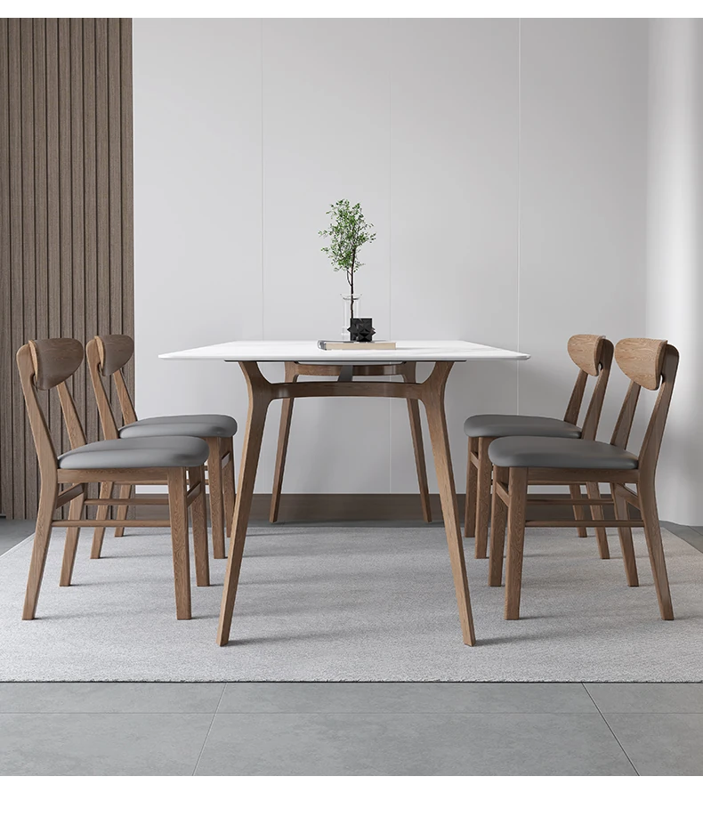 光沢のある天然木製ダイニングテーブル - モダンでシンプルな高級ウォールナット色、狭い部屋にもぴったりな長方形デザイン。食事のひとときを特別なものに!