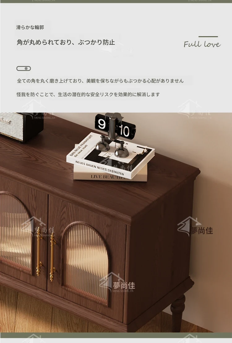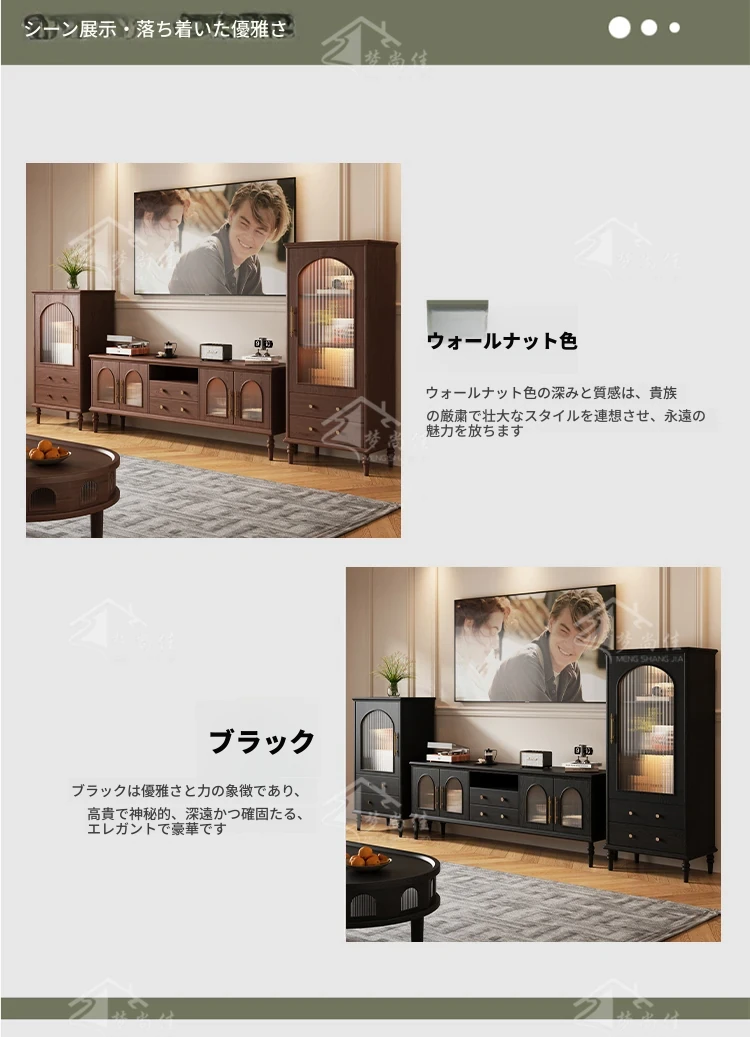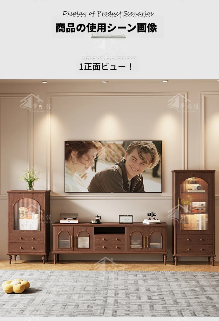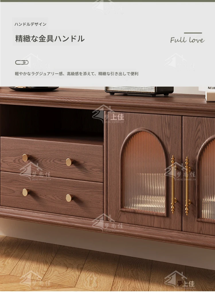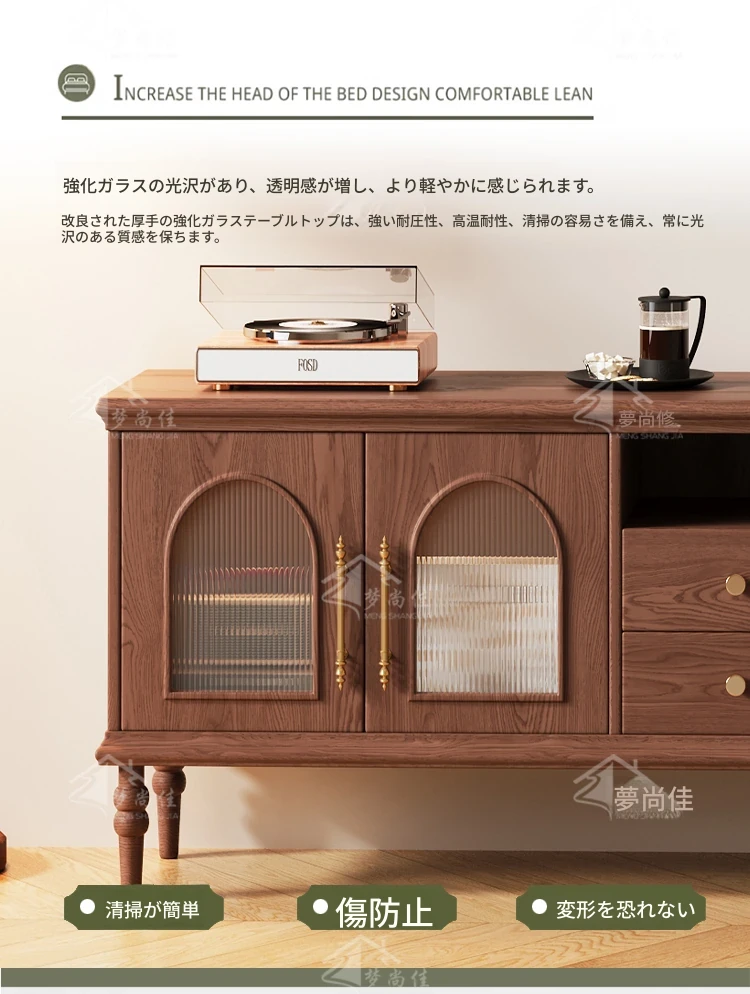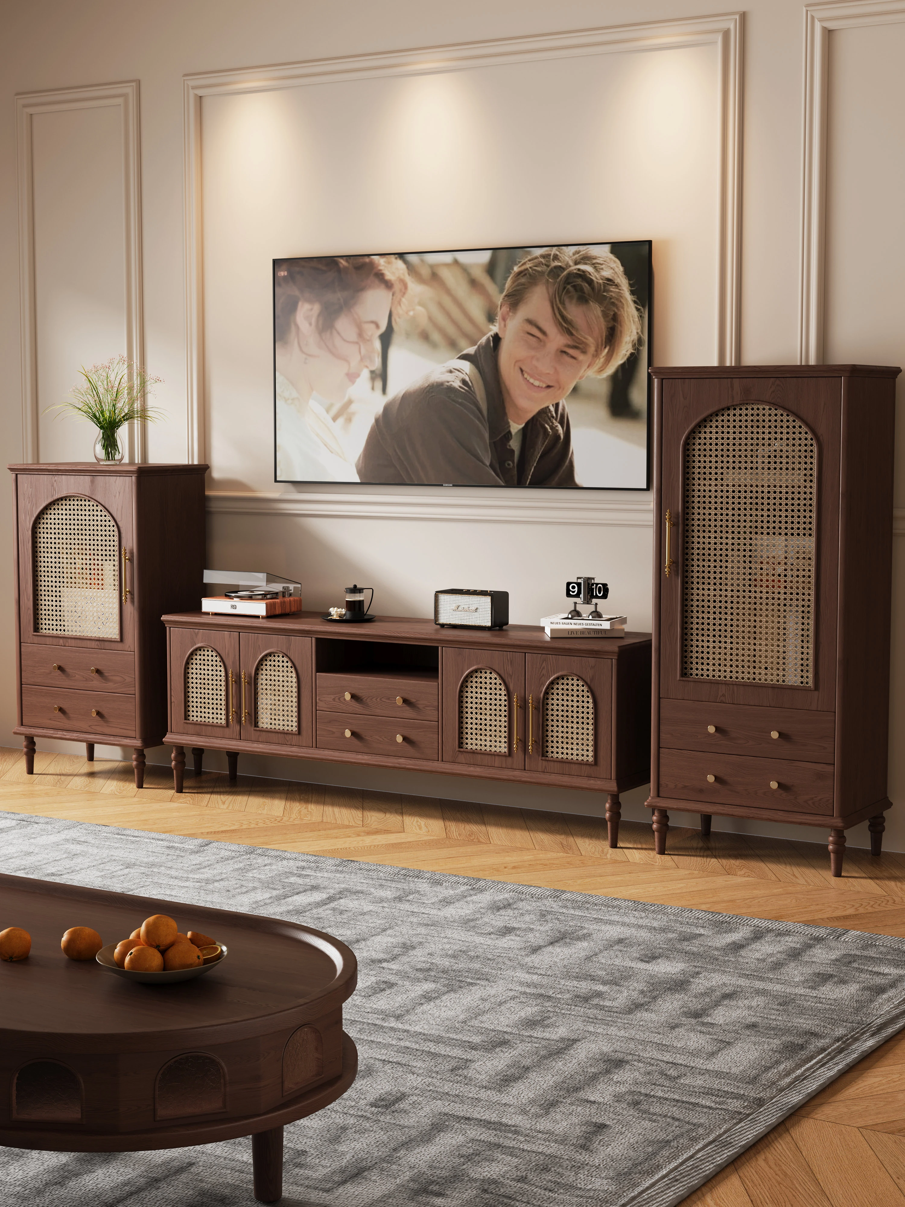 アメリカンカントリー風ヴィンテージウォールナット色天然木製テレビ台&コーヒーテーブルセット - 大容量収納付き!リビングをスタイリッシュに彩る実用家具