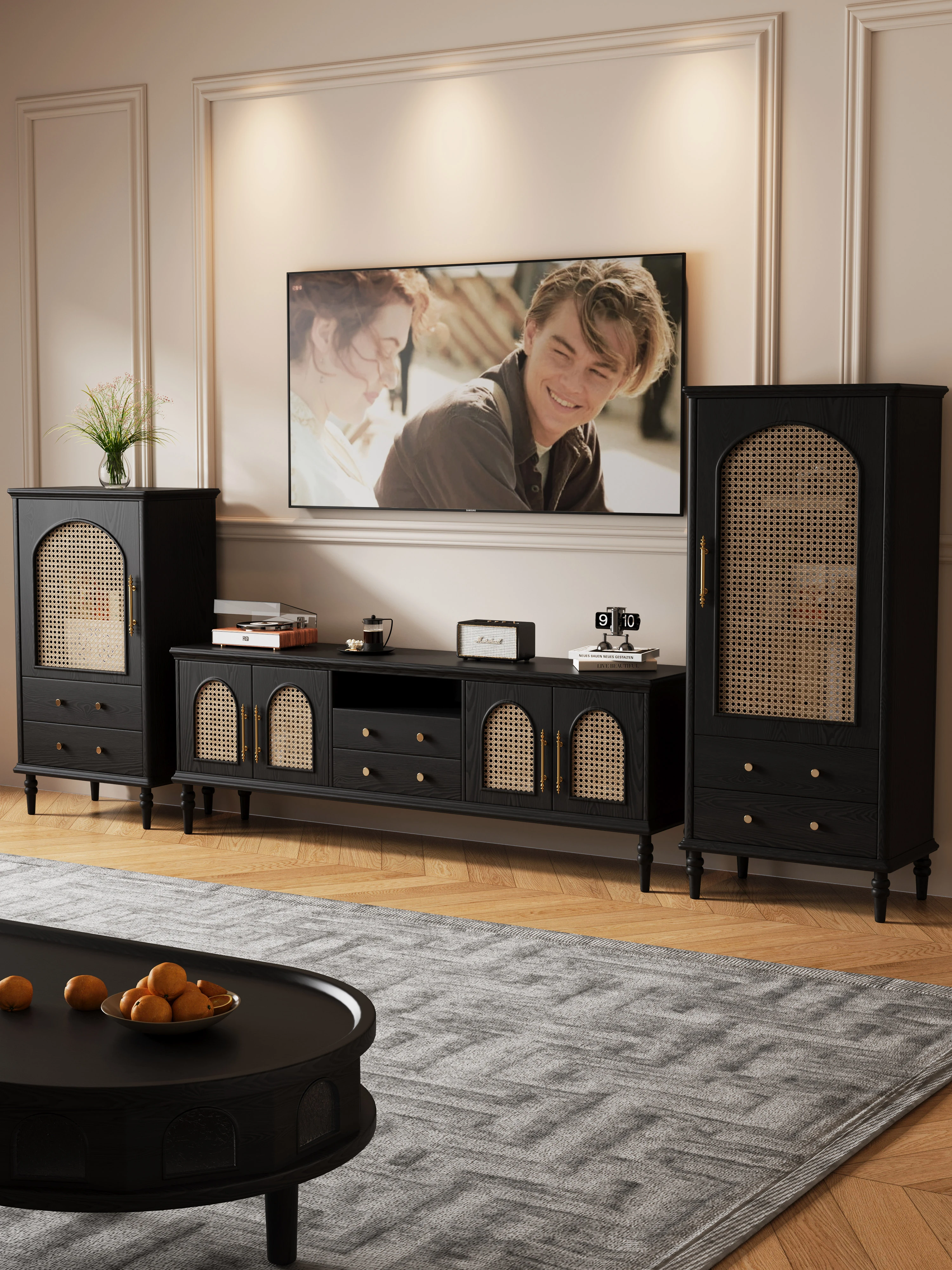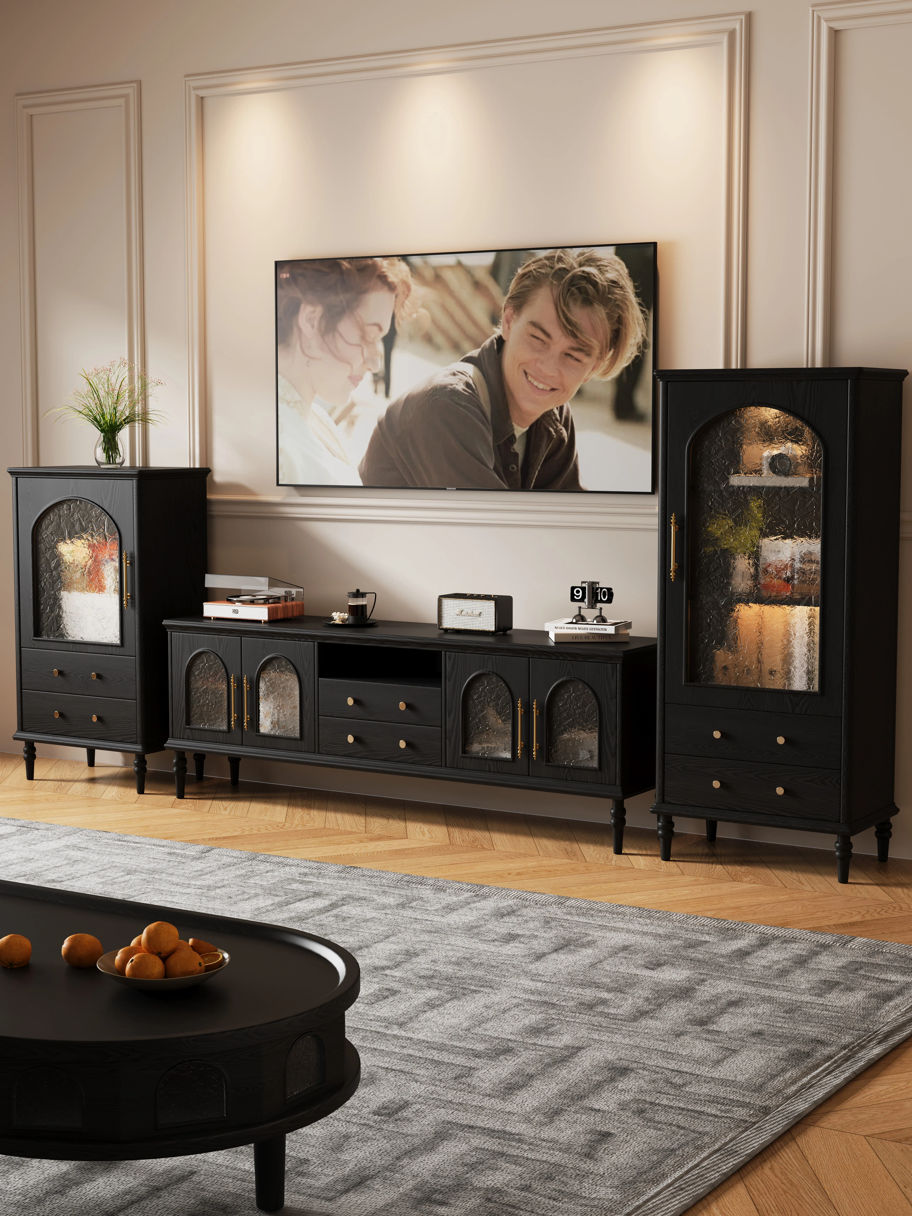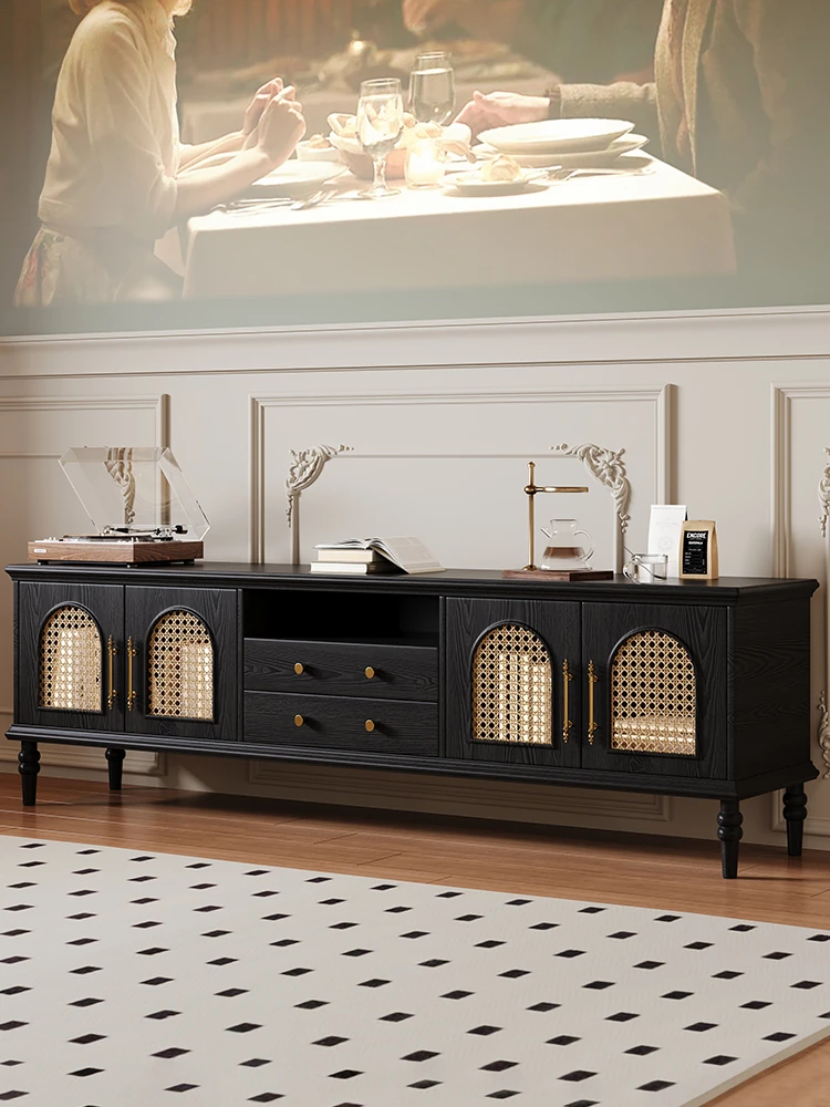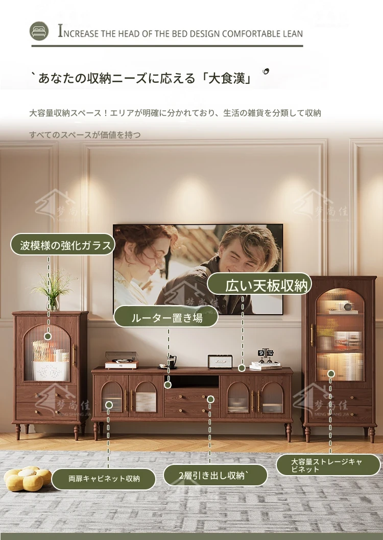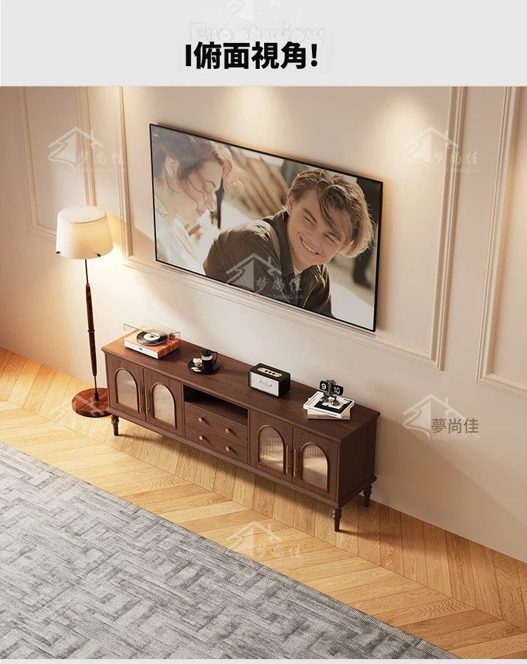 アメリカンカントリー風ヴィンテージウォールナット色天然木製テレビ台&コーヒーテーブルセット - 大容量収納付き!リビングをスタイリッシュに彩る実用家具