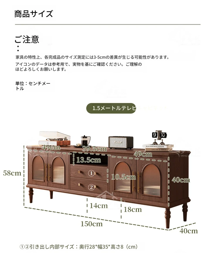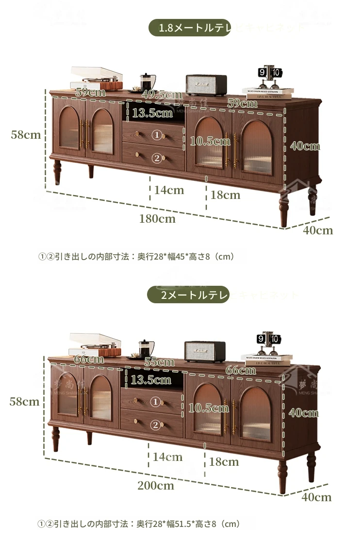 ウォールナット色の無垢材テレビボード1.8メートル 十年保証