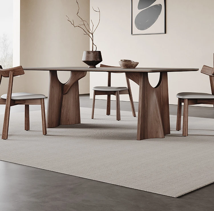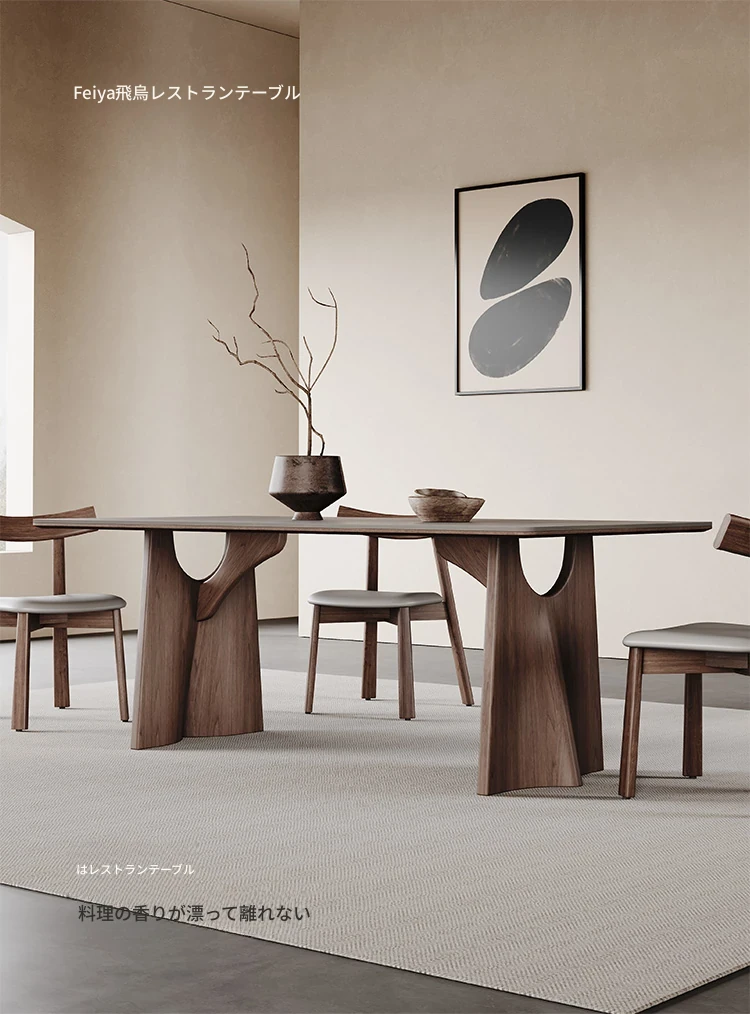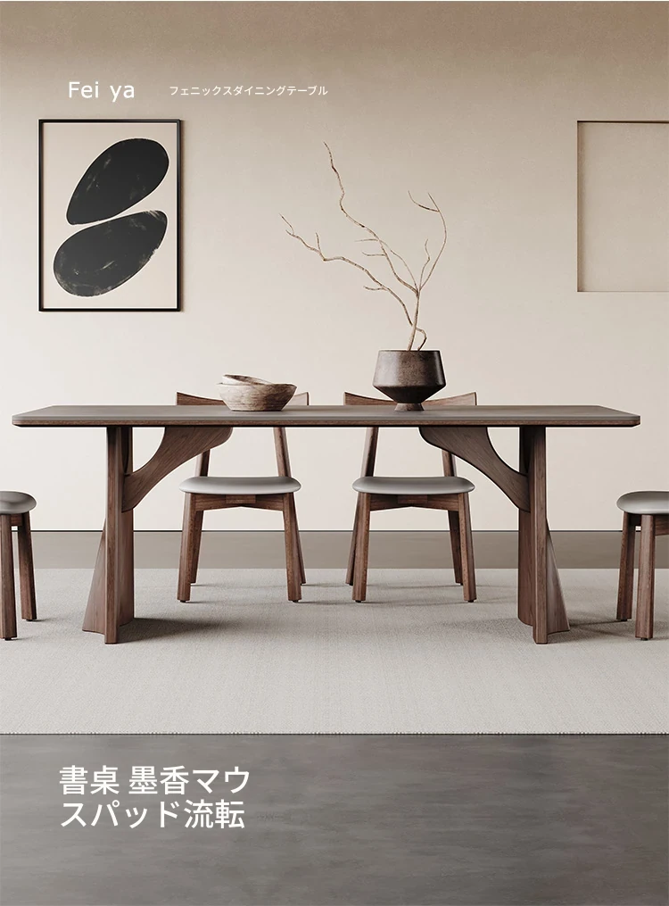 北欧風モダンシンプルデザインの新作ウォールナット木製テーブル - 洗練された美しさと機能性を兼ね備えたプレミアム dining experience!