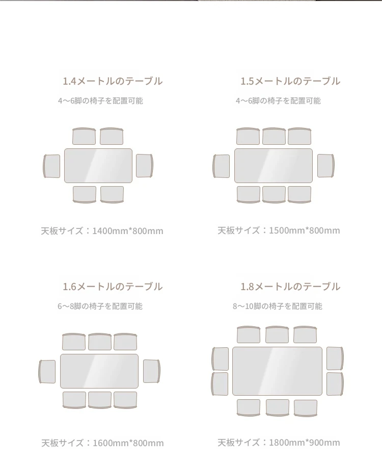 1.4*0.8メートル+6椅子(ハイエンドデザイナーコーディネート)