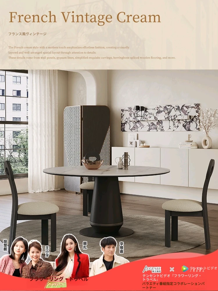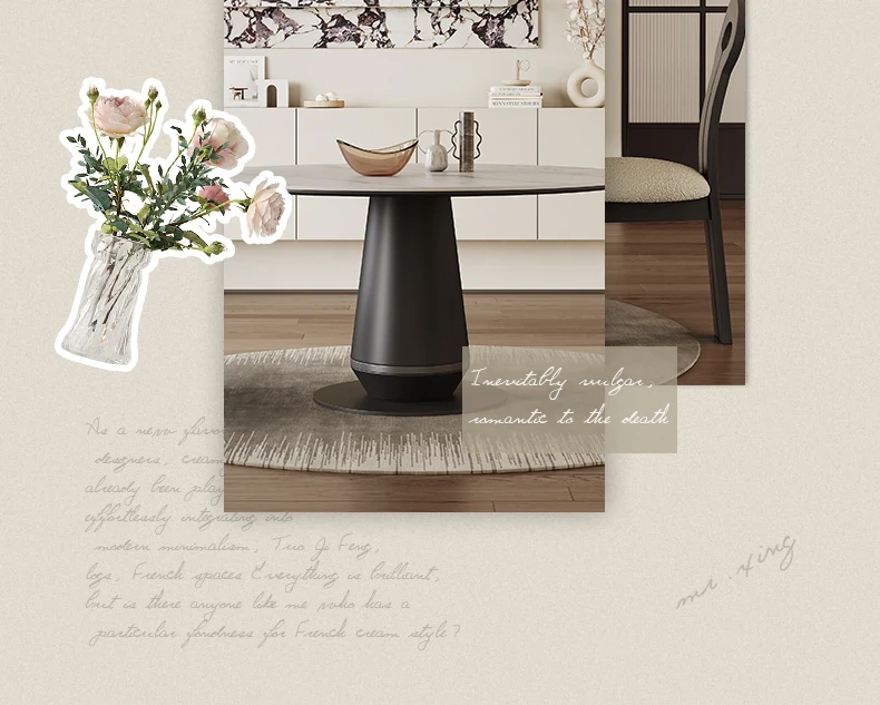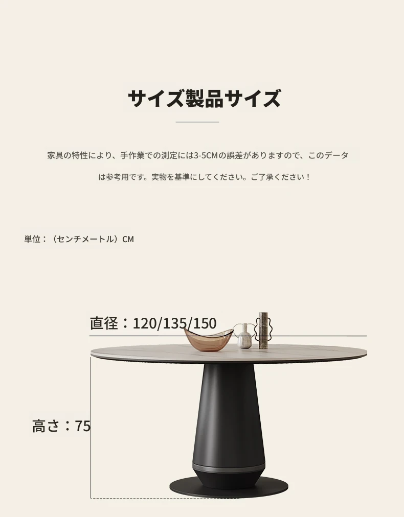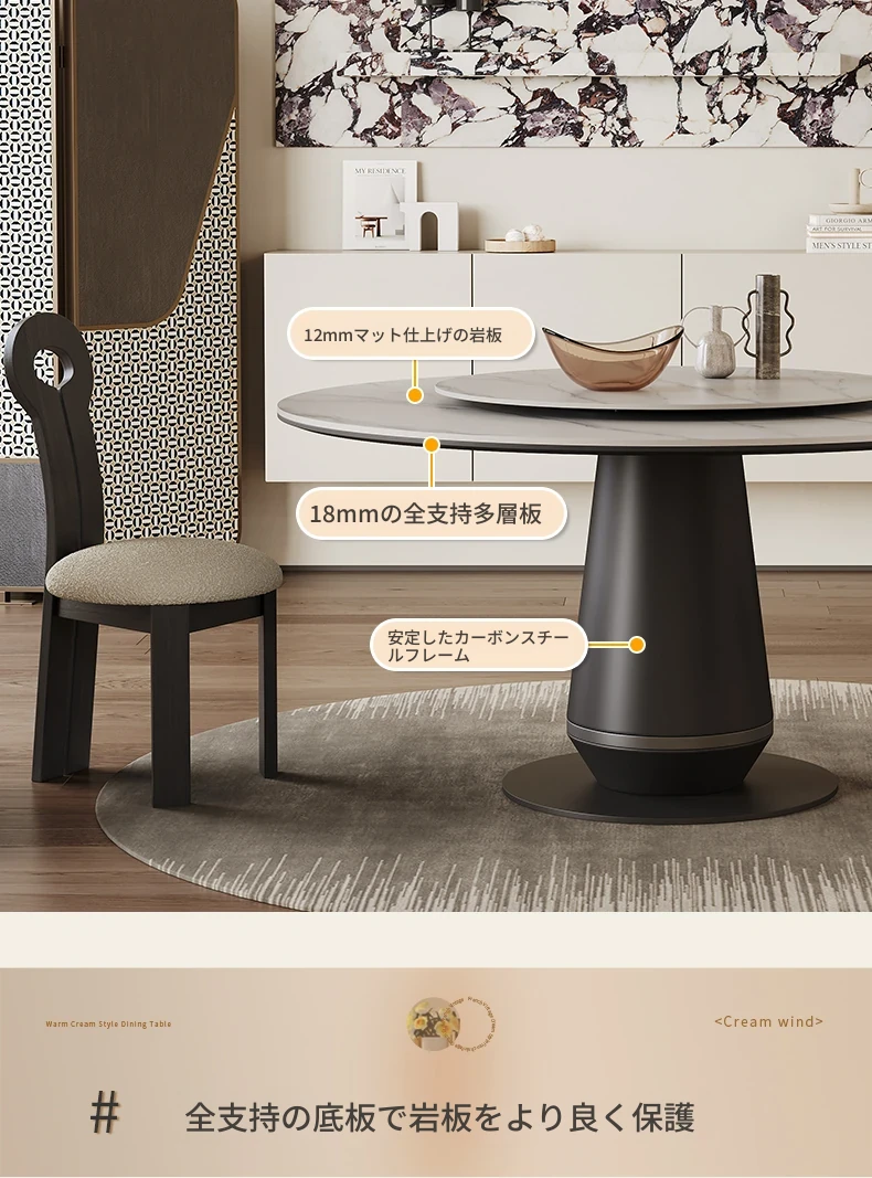 1.35メートル円形ダイニングテーブル(筆墨全托岩板ダイニングテーブル)