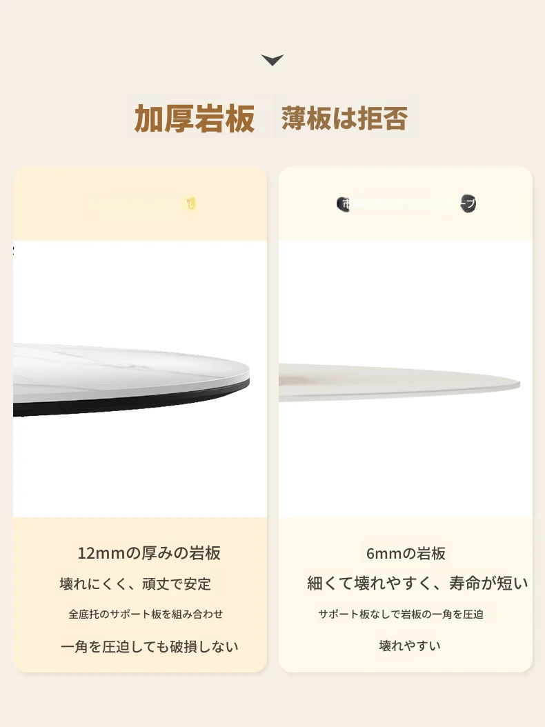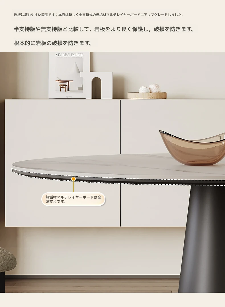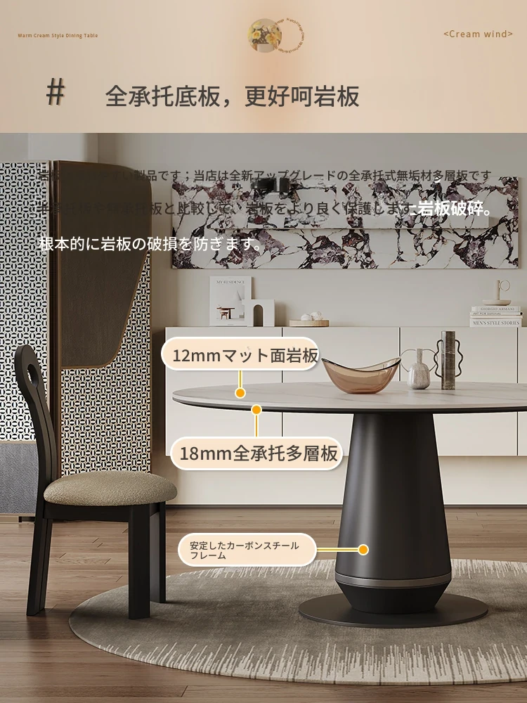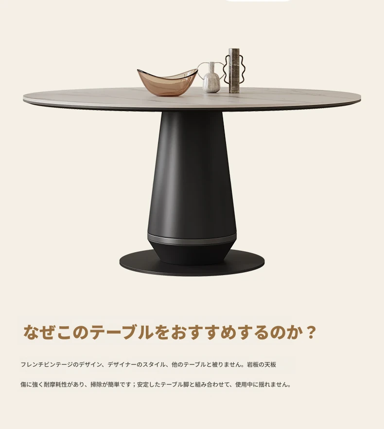 1メートル円形ダイニングテーブル(筆墨全托岩板ダイニングテーブル)
