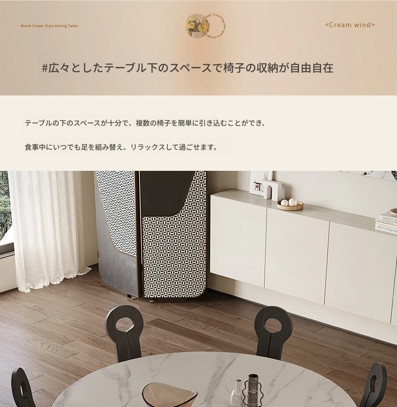 1.35メートル円形ダイニングテーブル(回転台付き)+6椅子(デザイナーセット)
