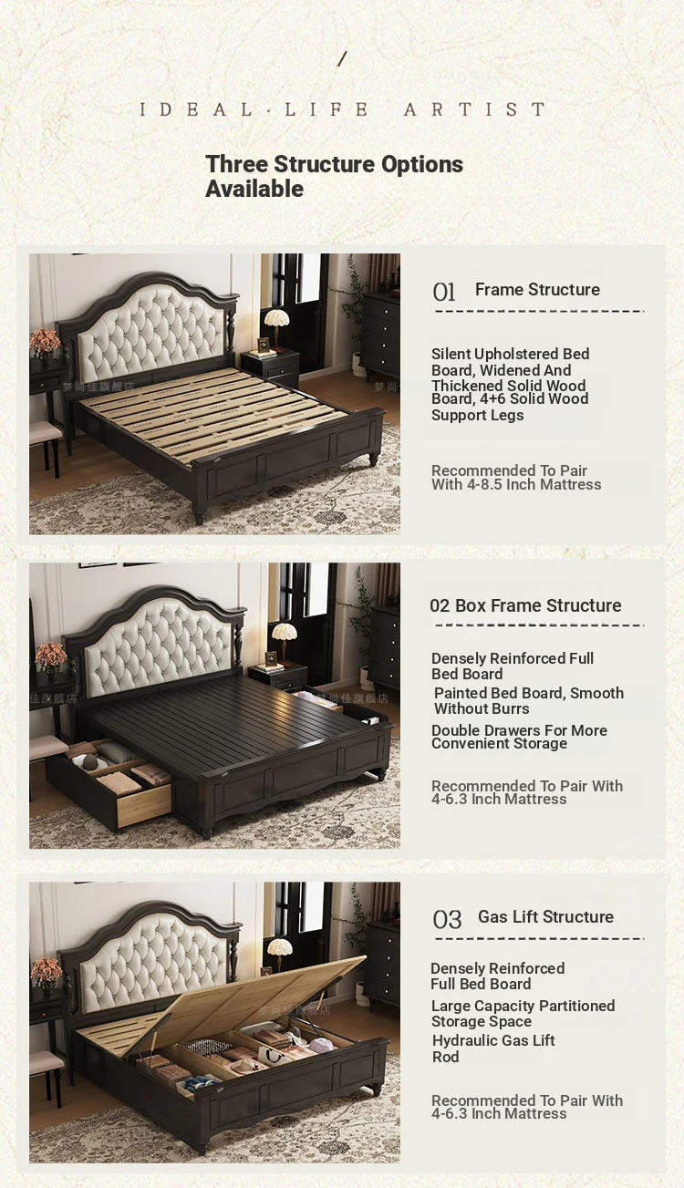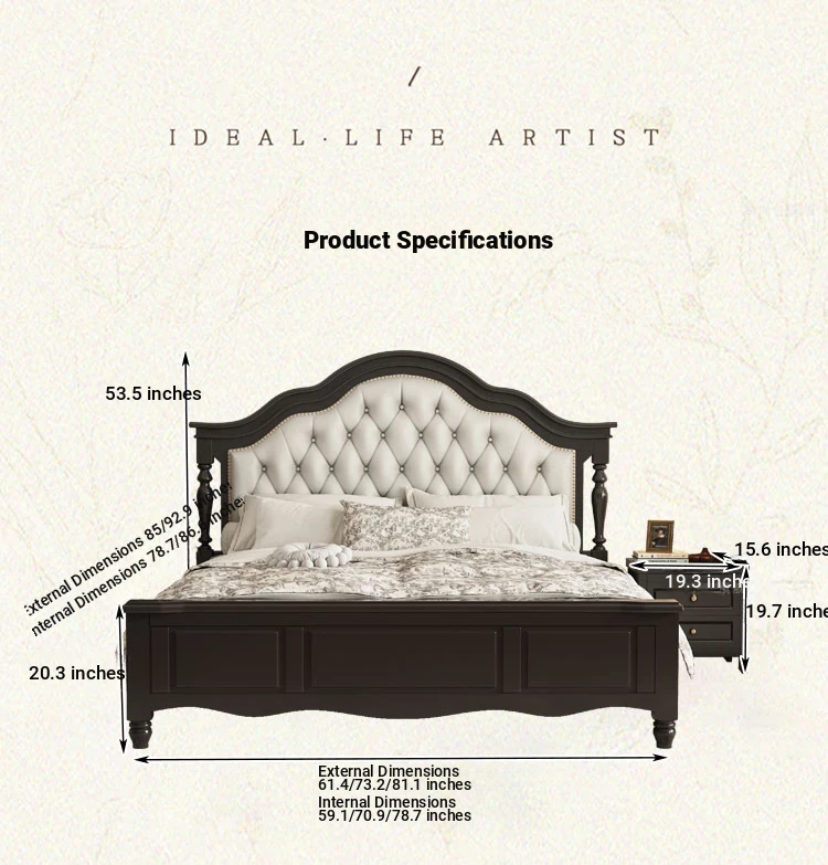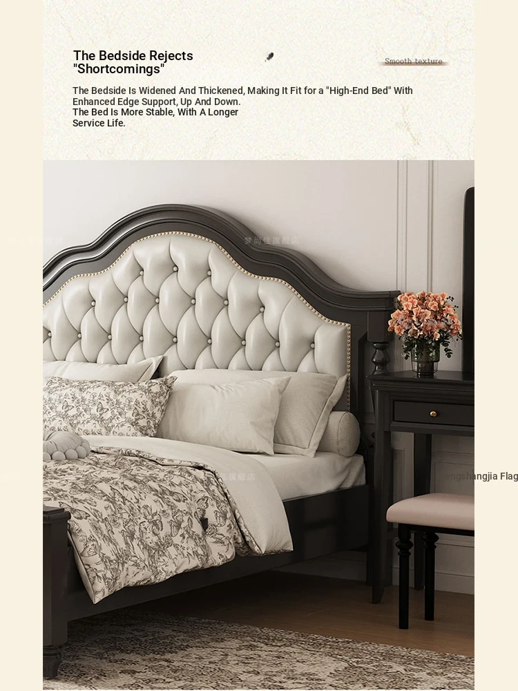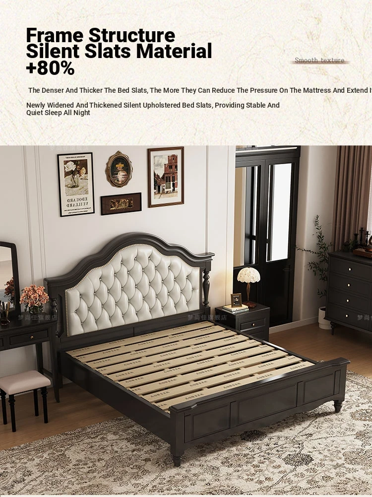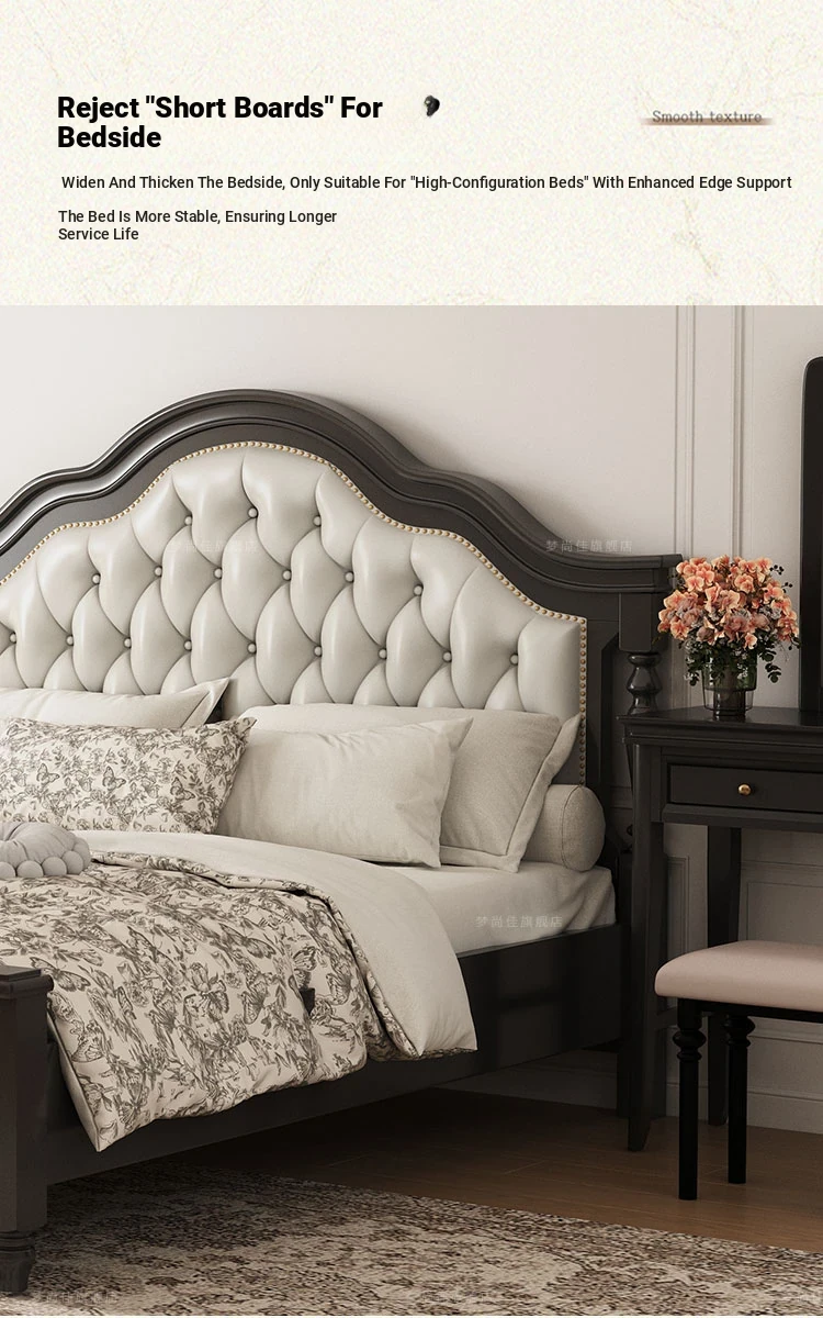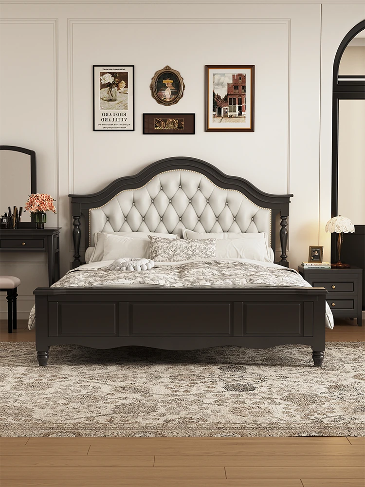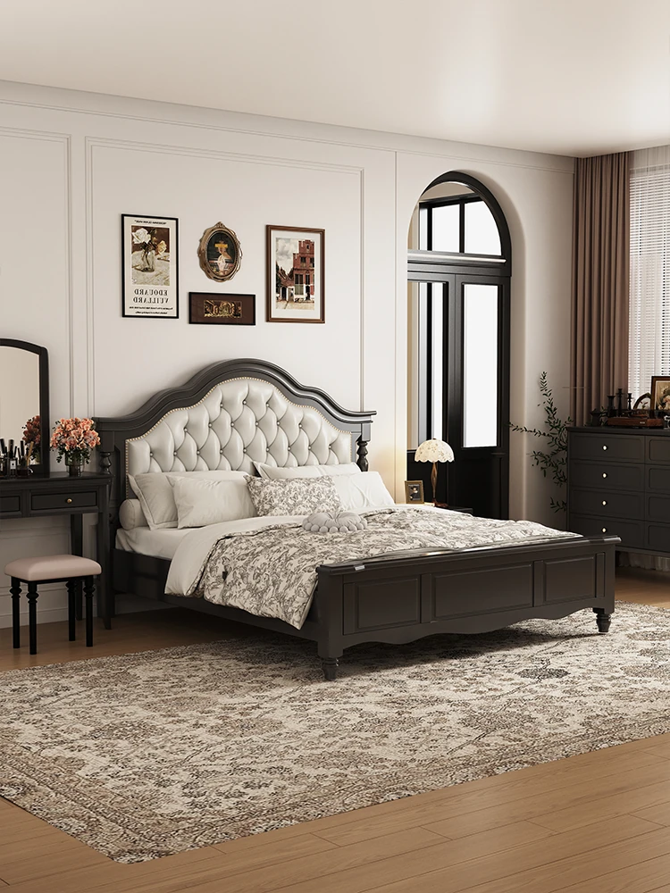 Title: Luxurious Vintage French-Style Black Solid Wood Bed with Soft Headboard - 1.5m & 1.8m King Storage Bed for Elegant Master Bedrooms