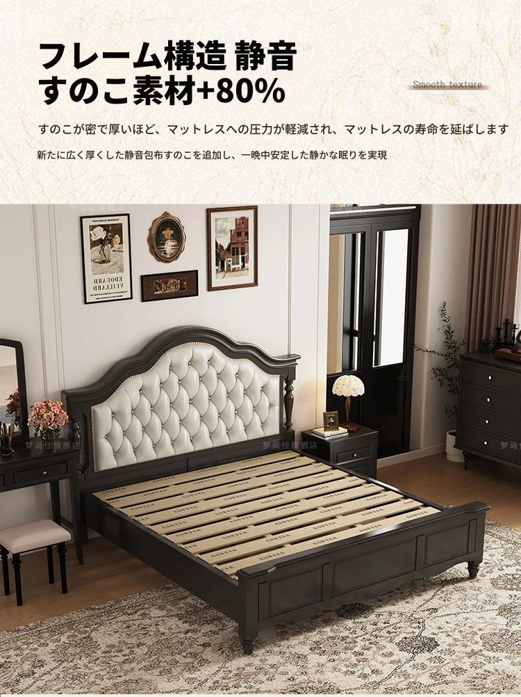 夢尚佳フレンチヴィンテージ無垢材ベッドヘッドソフトパック - 1.8m/1.5m ブラックライトラグジュアリーアメリカンスタイル ダブルストレージ 主寝室に最適
