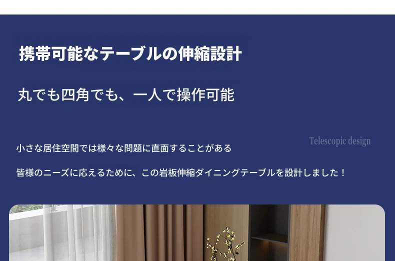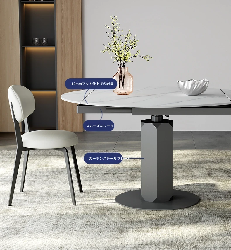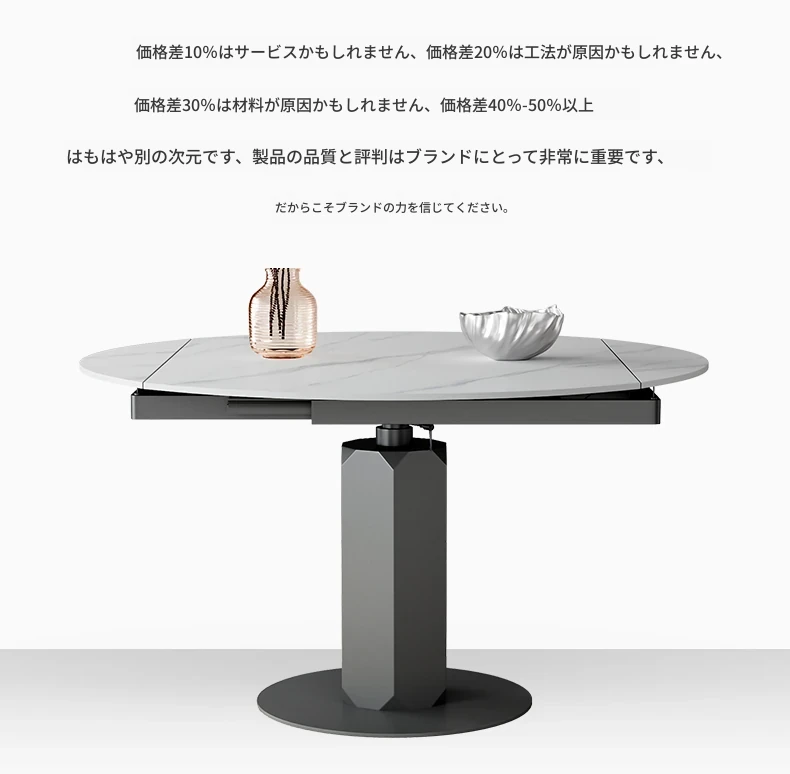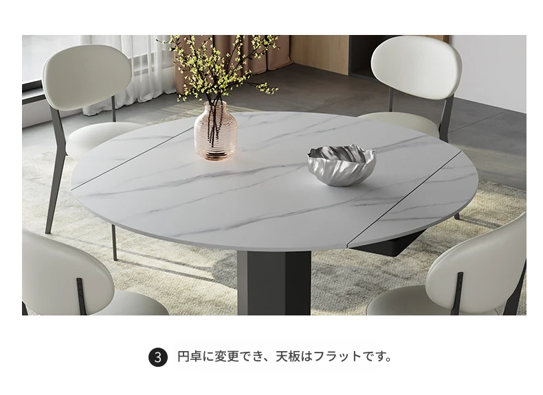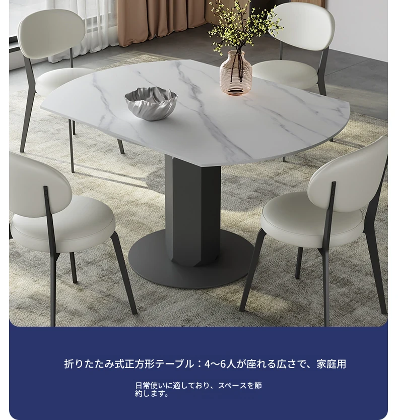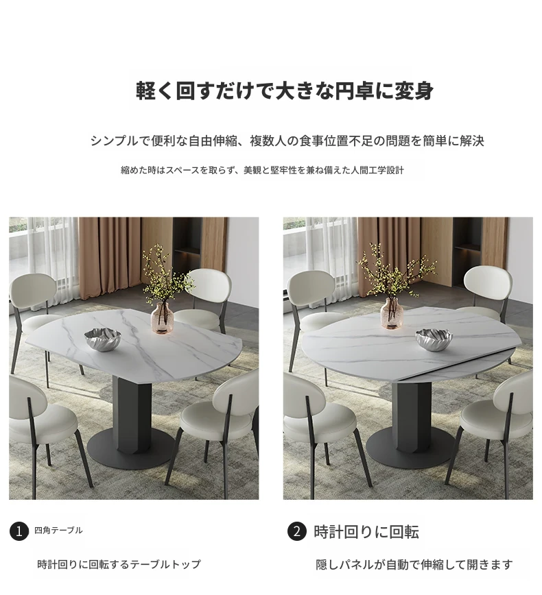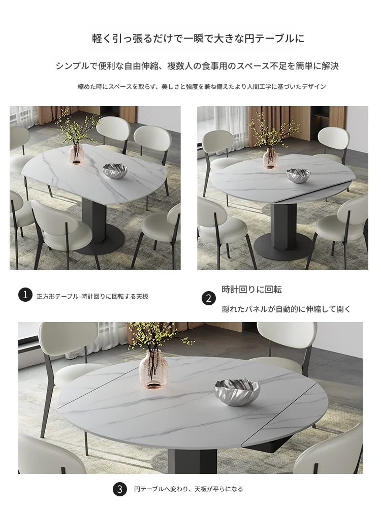 回転式伸縮岩板ダイニングテーブル、現代的でシンプルなデザイン!1.2メートルのこぢんまりとしたイタリアンスタイル、リビングにぴったりな四角形から丸型に変形可能!小スペースでも大活躍!