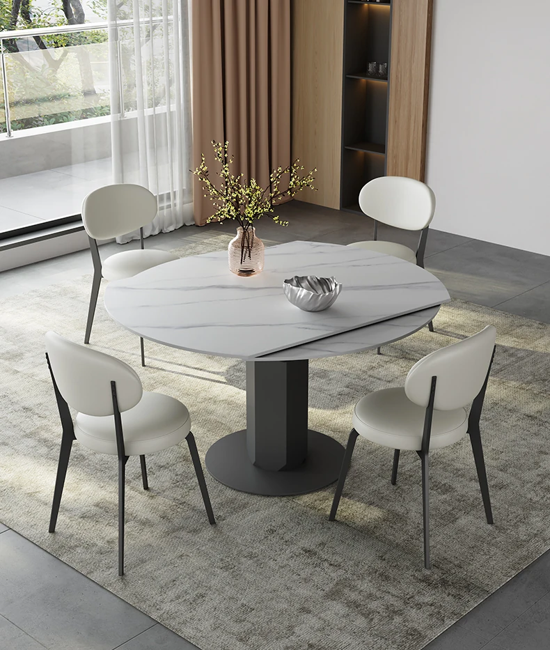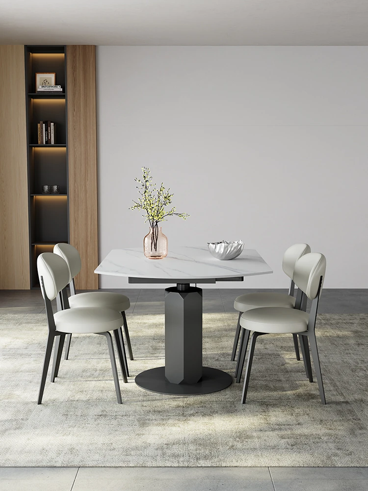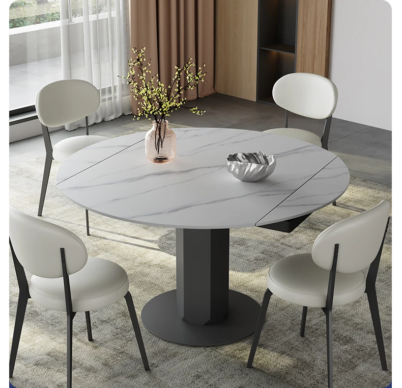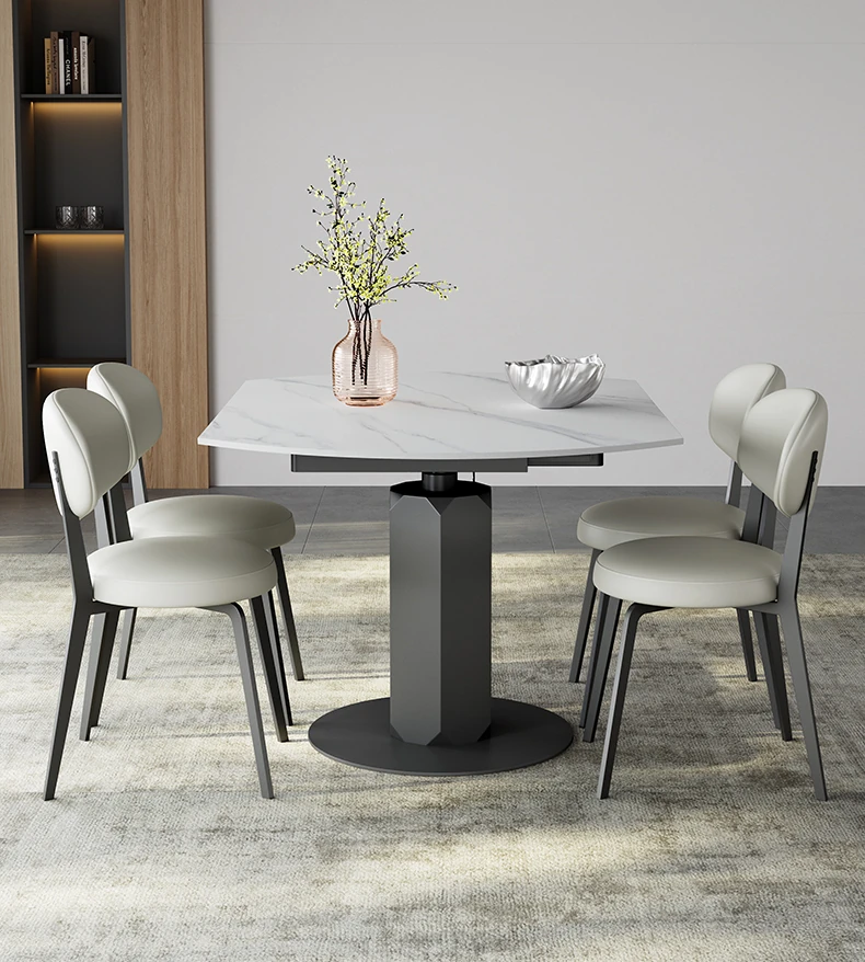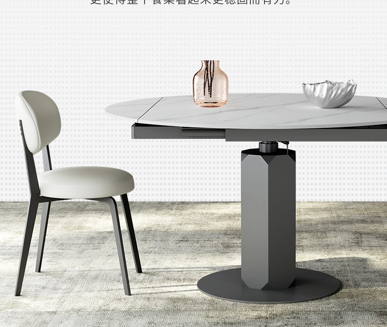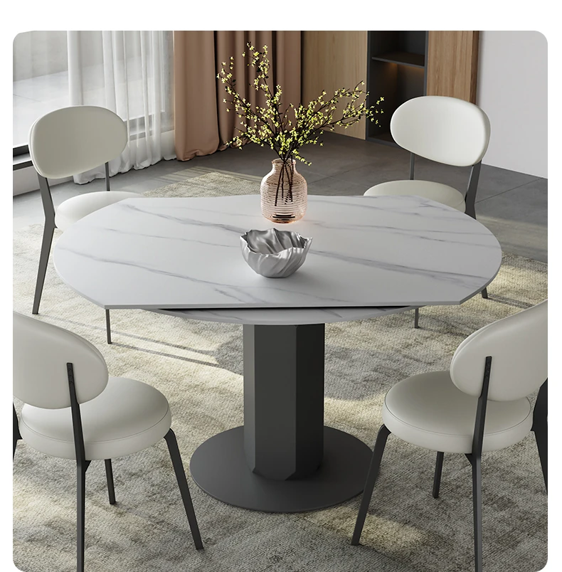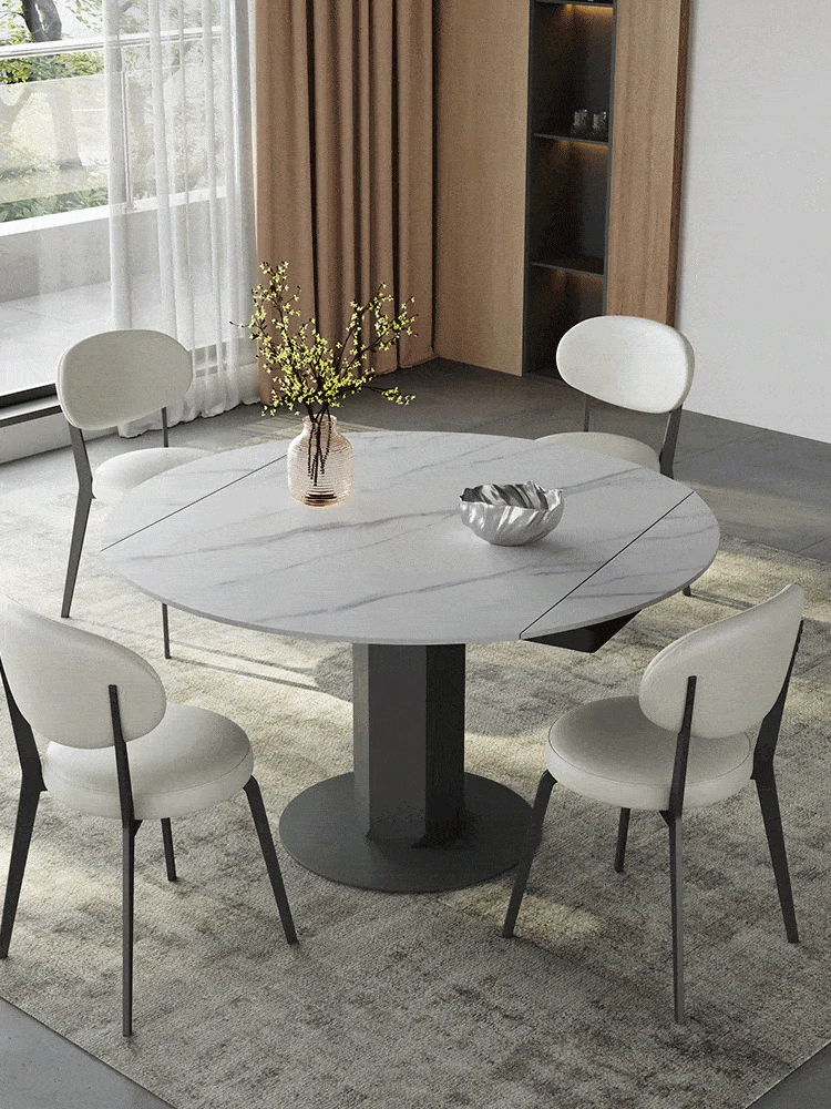 回転式伸縮岩板ダイニングテーブル、現代的でシンプルなデザイン!1.2メートルのこぢんまりとしたイタリアンスタイル、リビングにぴったりな四角形から丸型に変形可能!小スペースでも大活躍!
