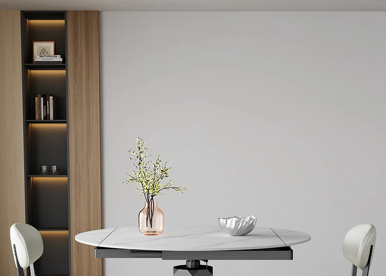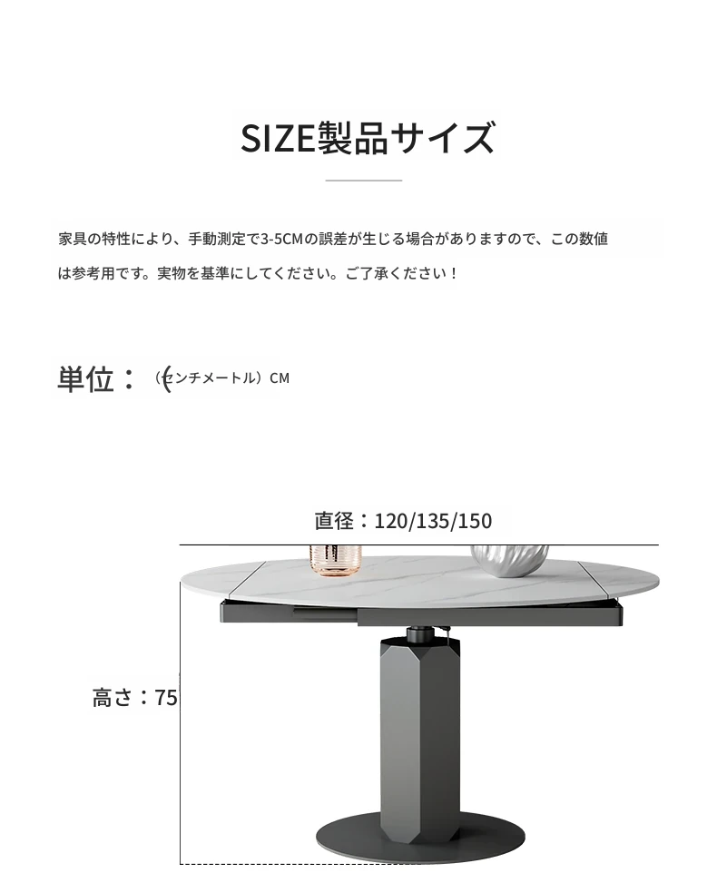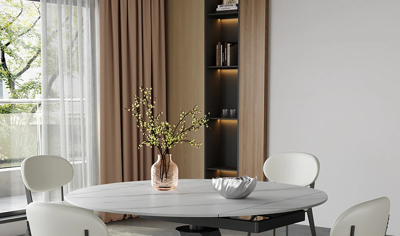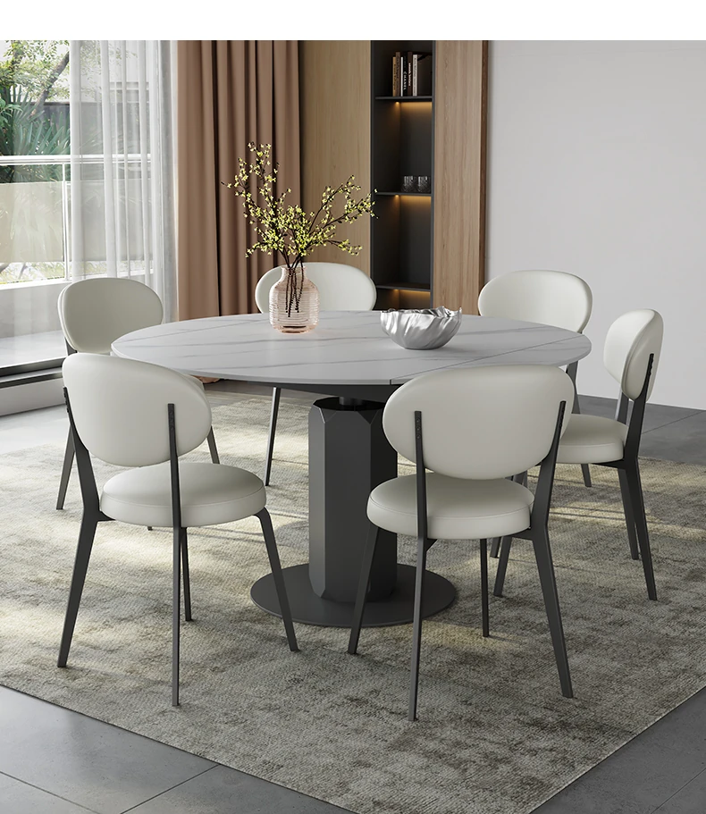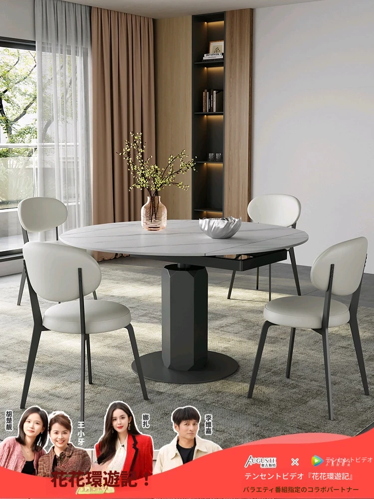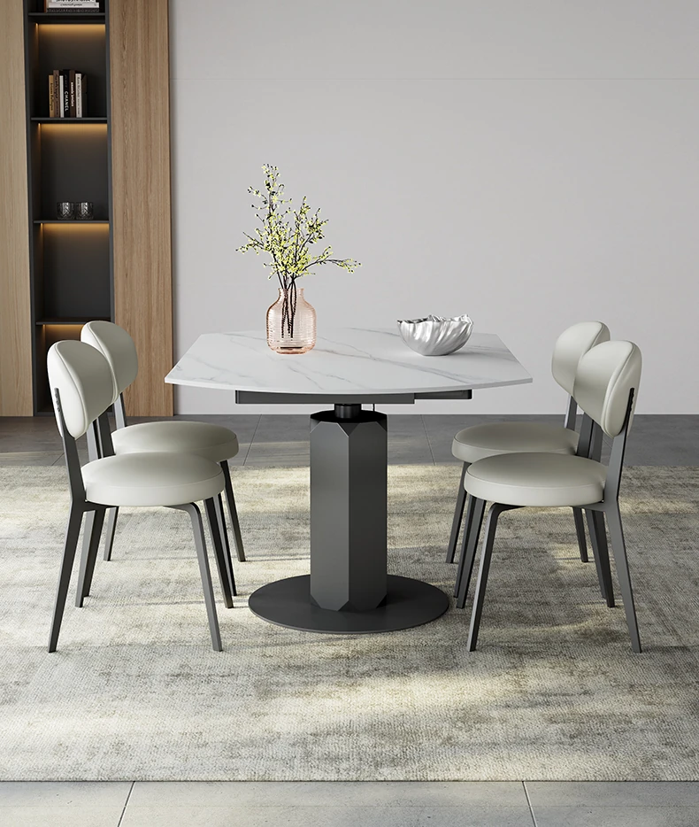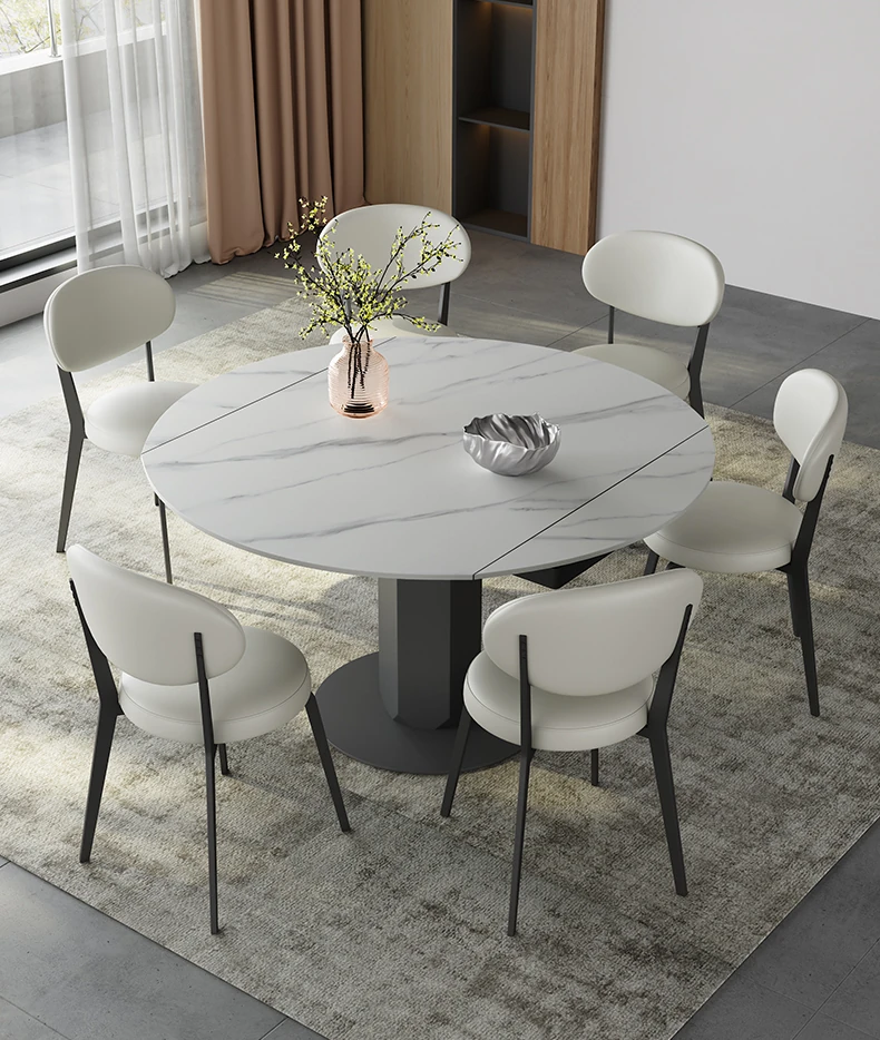 回転式伸縮岩板ダイニングテーブル、現代的でシンプルなデザイン!1.2メートルのこぢんまりとしたイタリアンスタイル、リビングにぴったりな四角形から丸型に変形可能!小スペースでも大活躍!