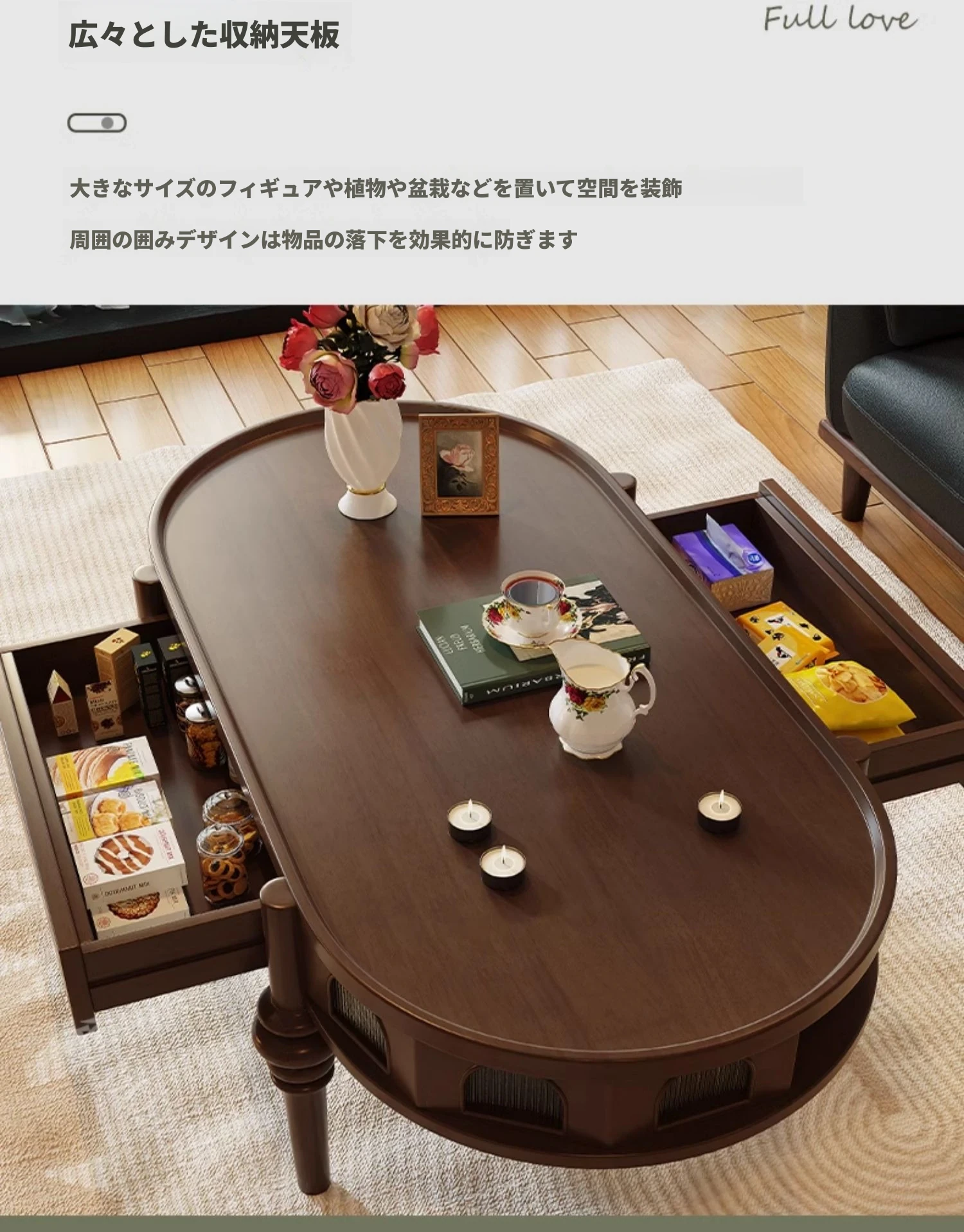 新登場!アメリカンレトロ風無垢材ラウンドコーヒーテーブル:おしゃれなデザイナー設計、小型リビングにぴったりなフレンチスタイル
